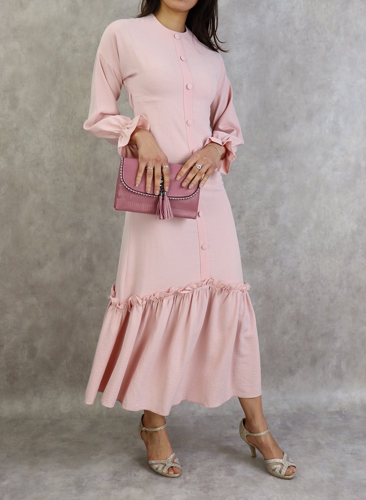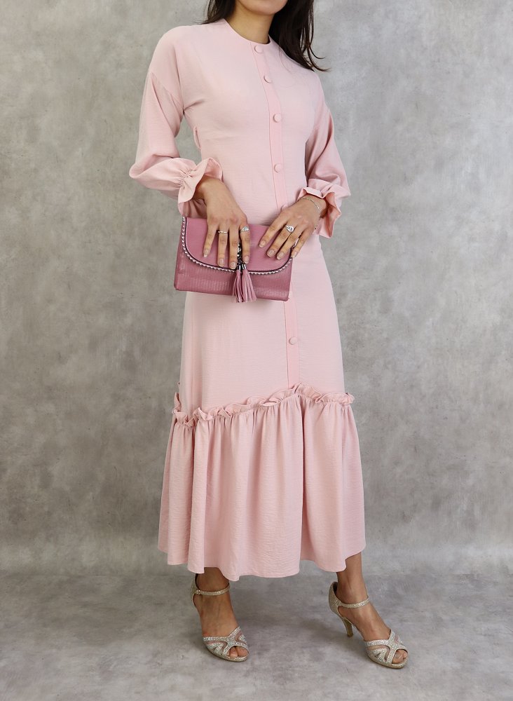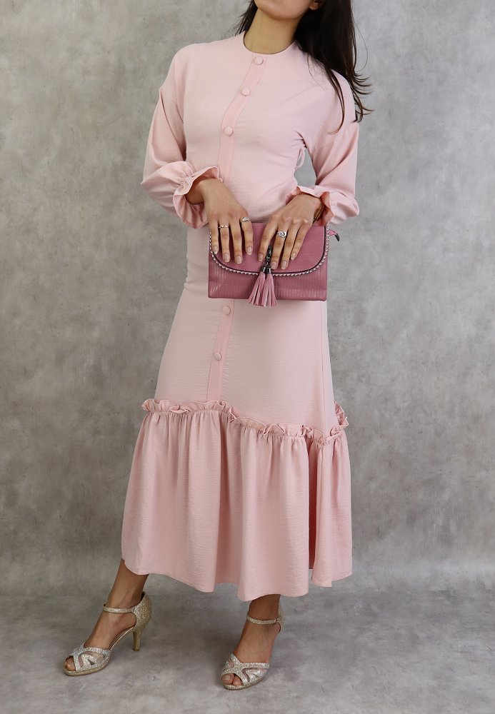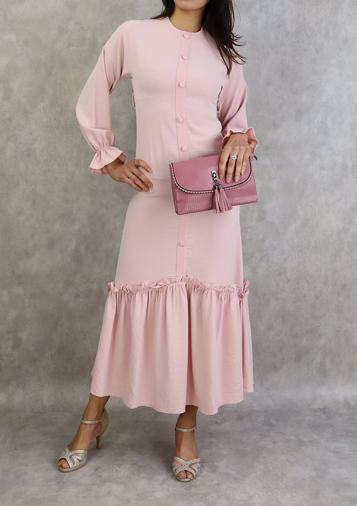 Robe longue à volants pour femme (Robe turque en ligne) - Couleur Rose clair Vetement & Accessoire