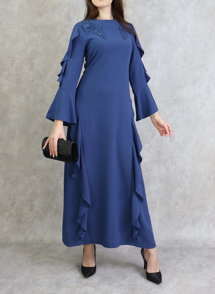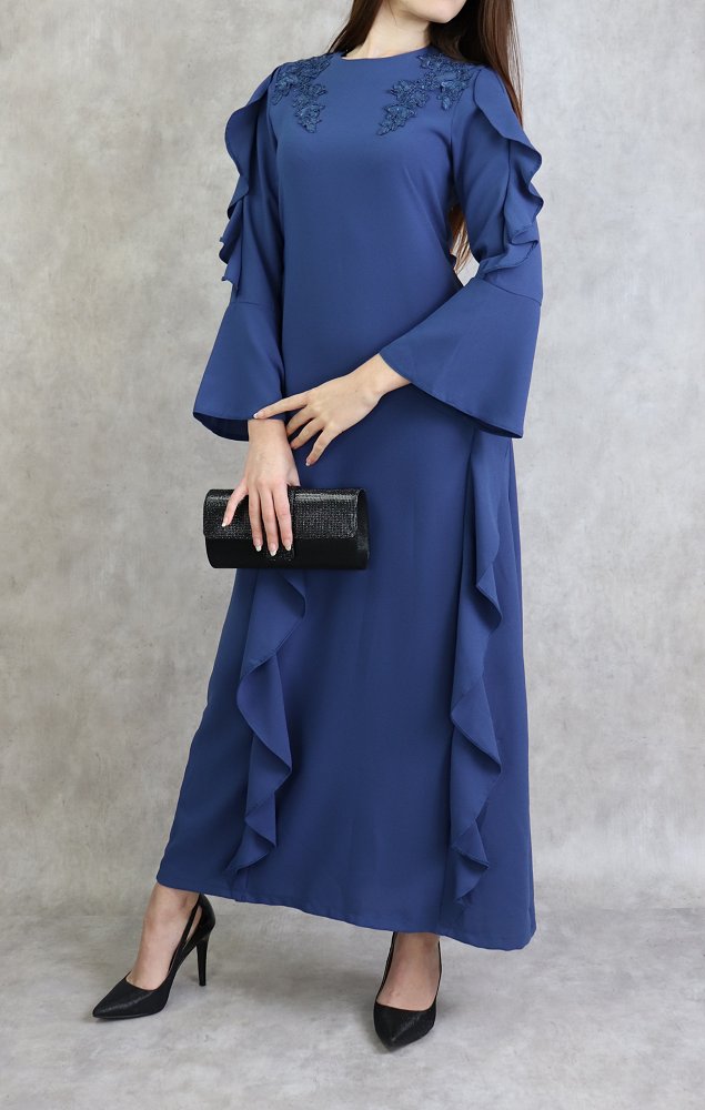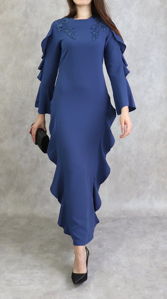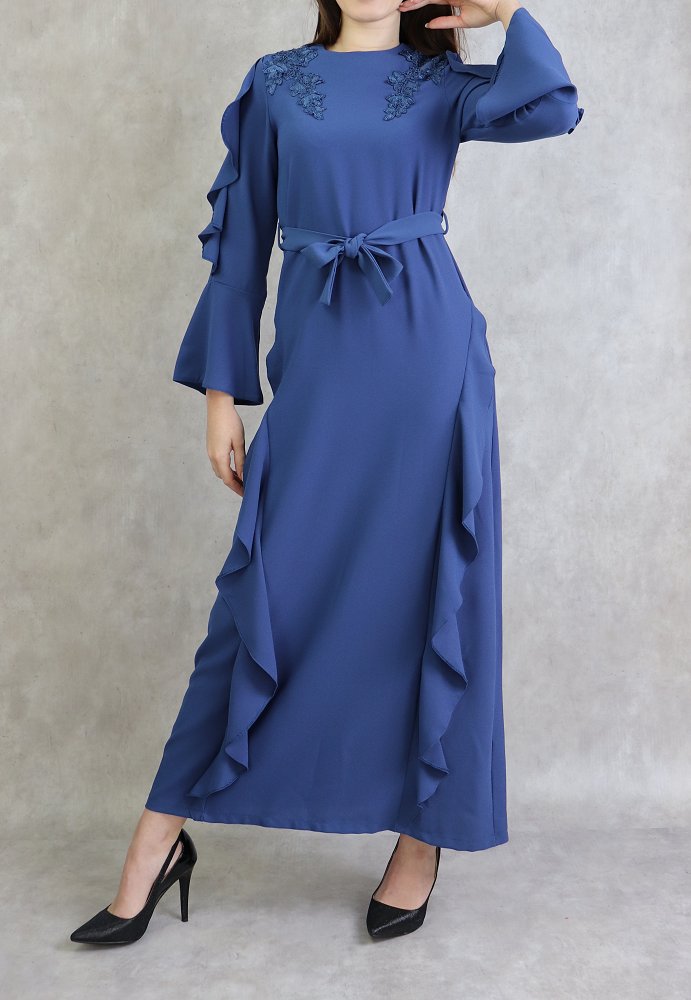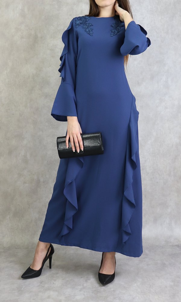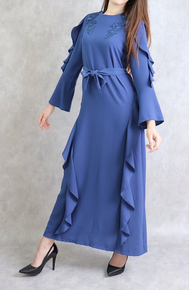 Robe longue à froufrous - Couleur Bleu Vetement & Accessoire