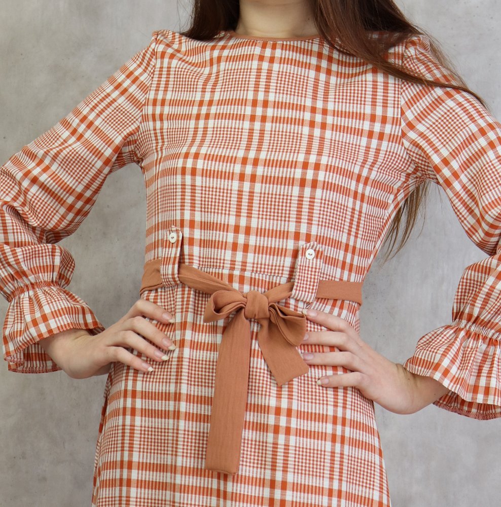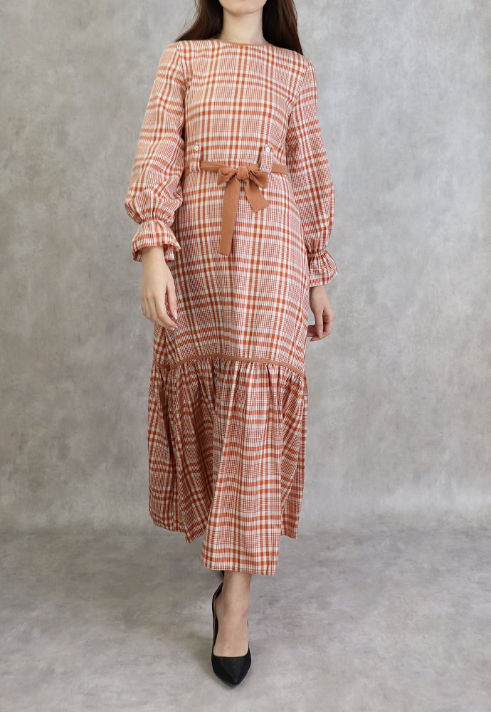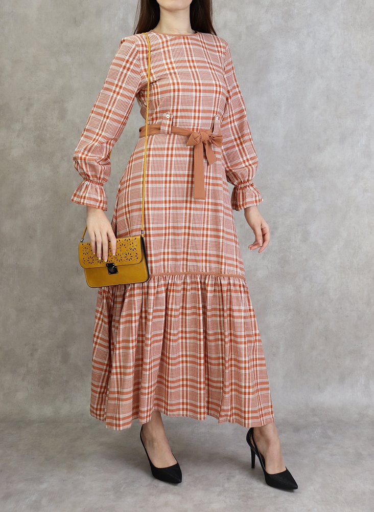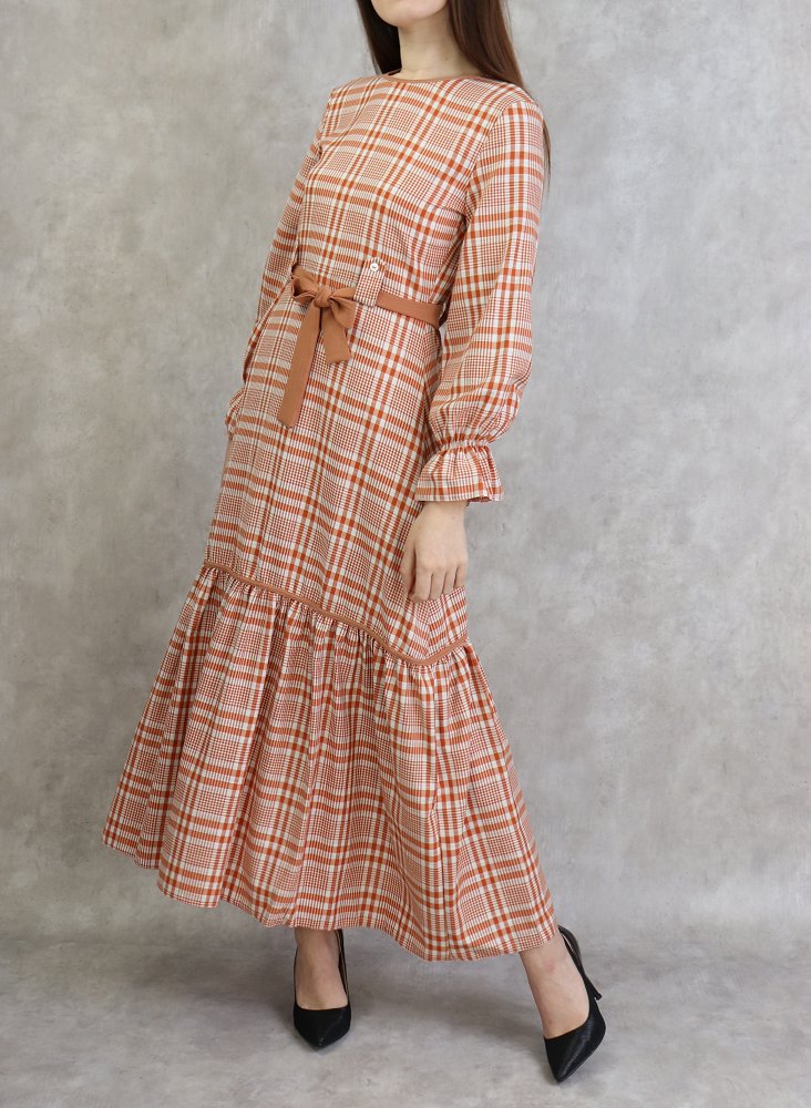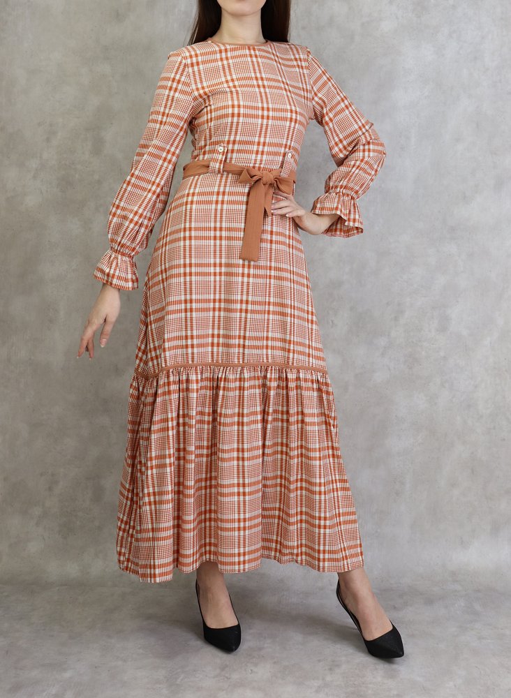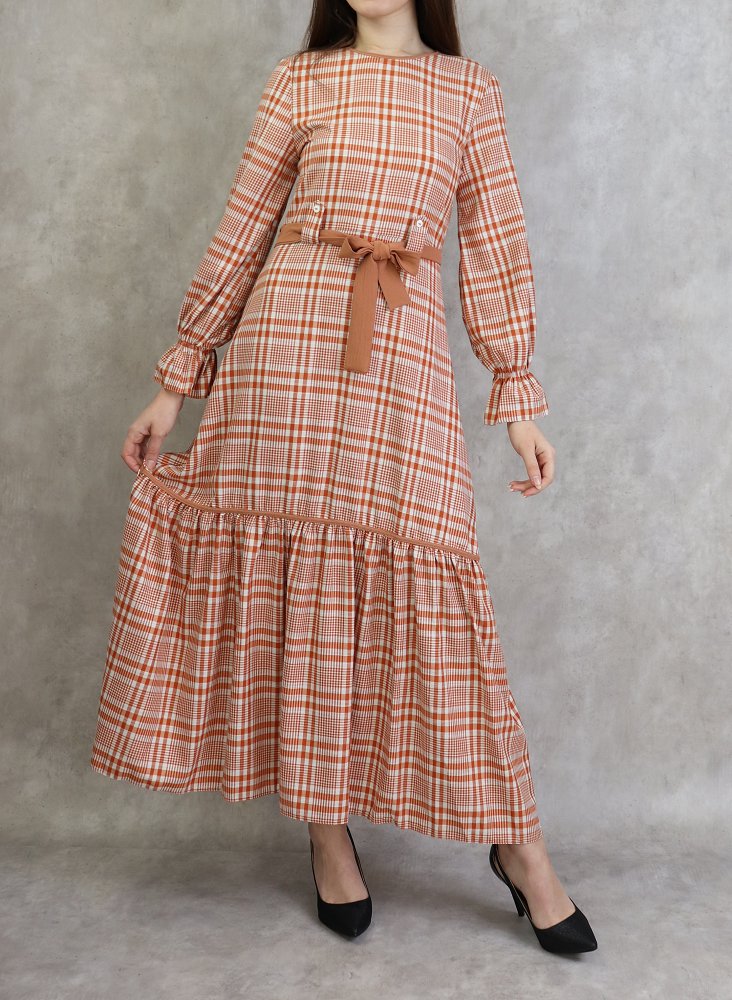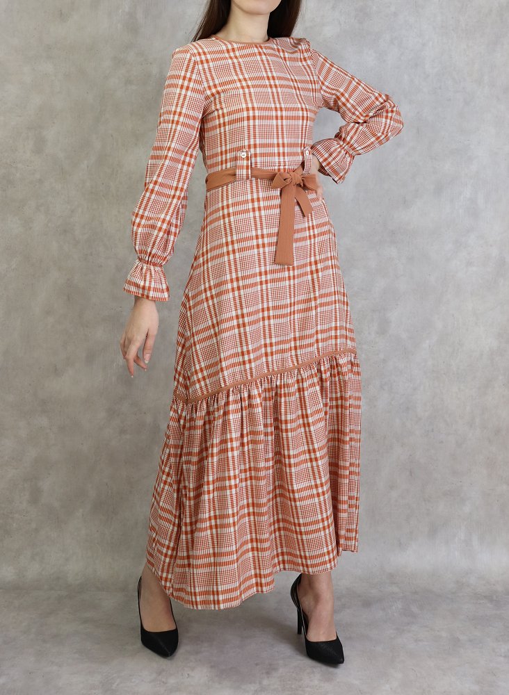 Robe longue à carreaux évasée - Couleur rouille Vetement & Accessoire