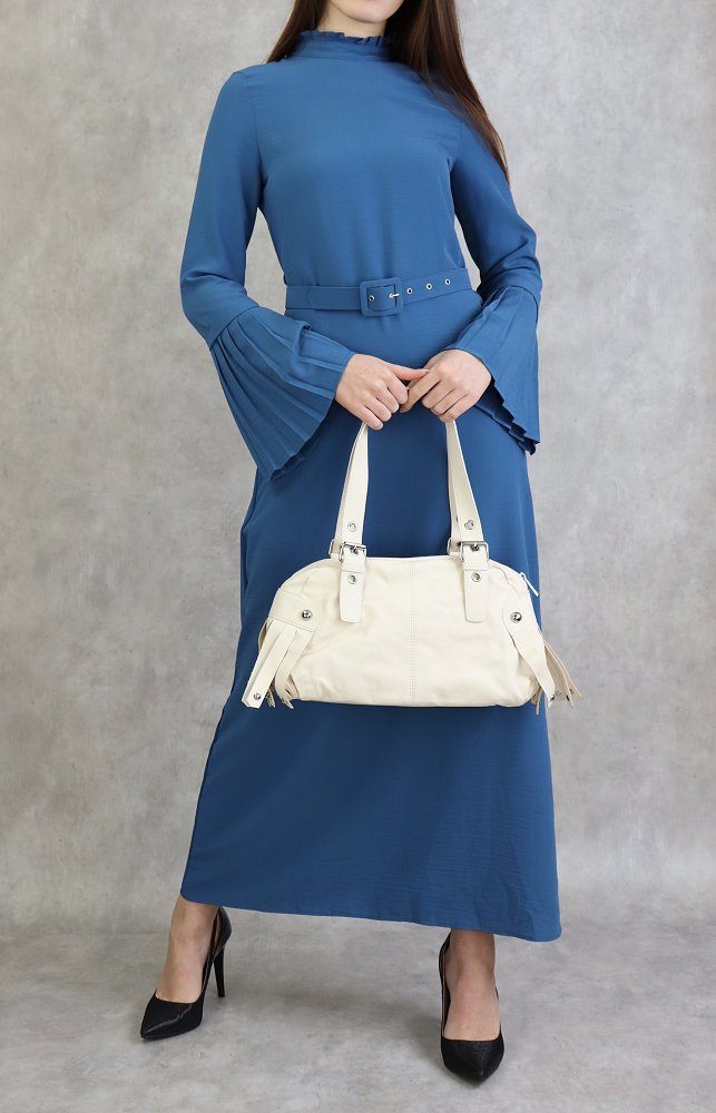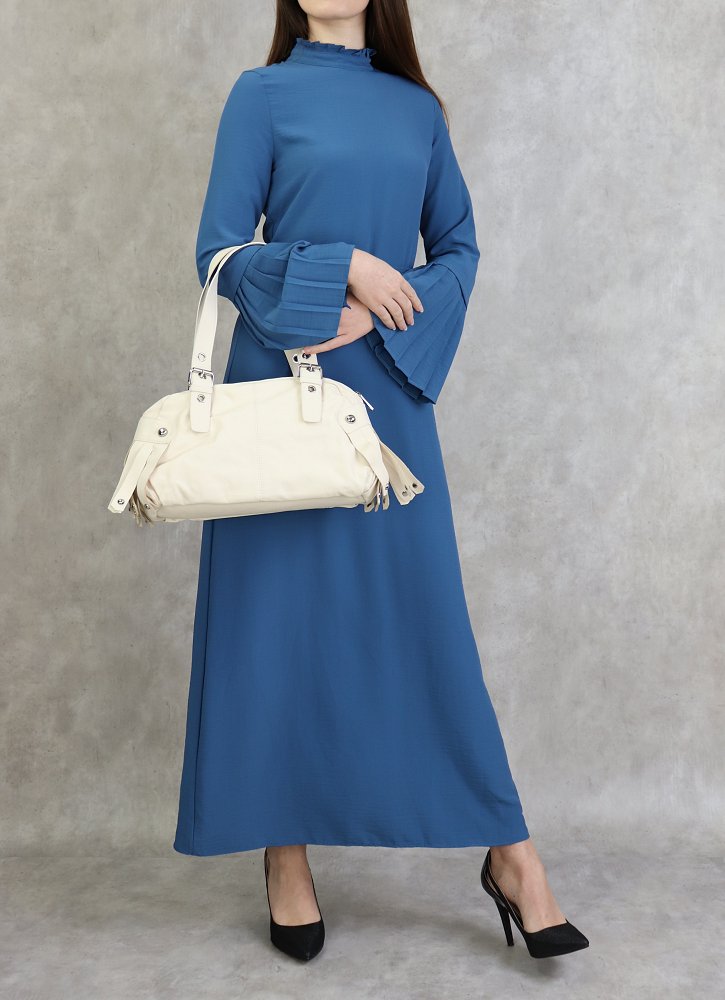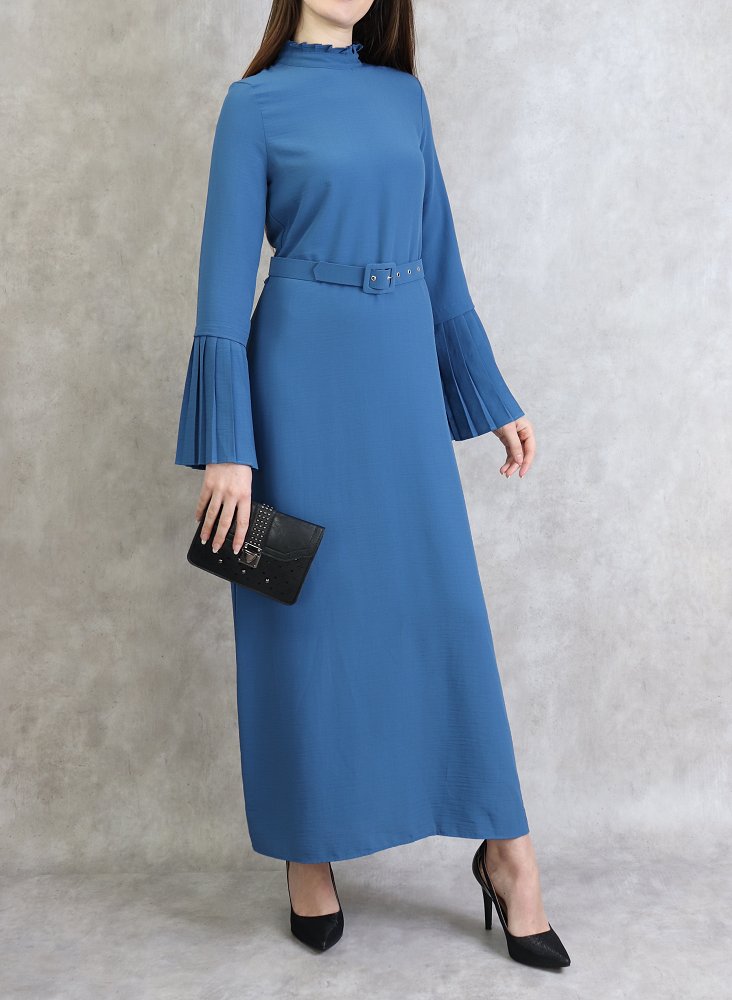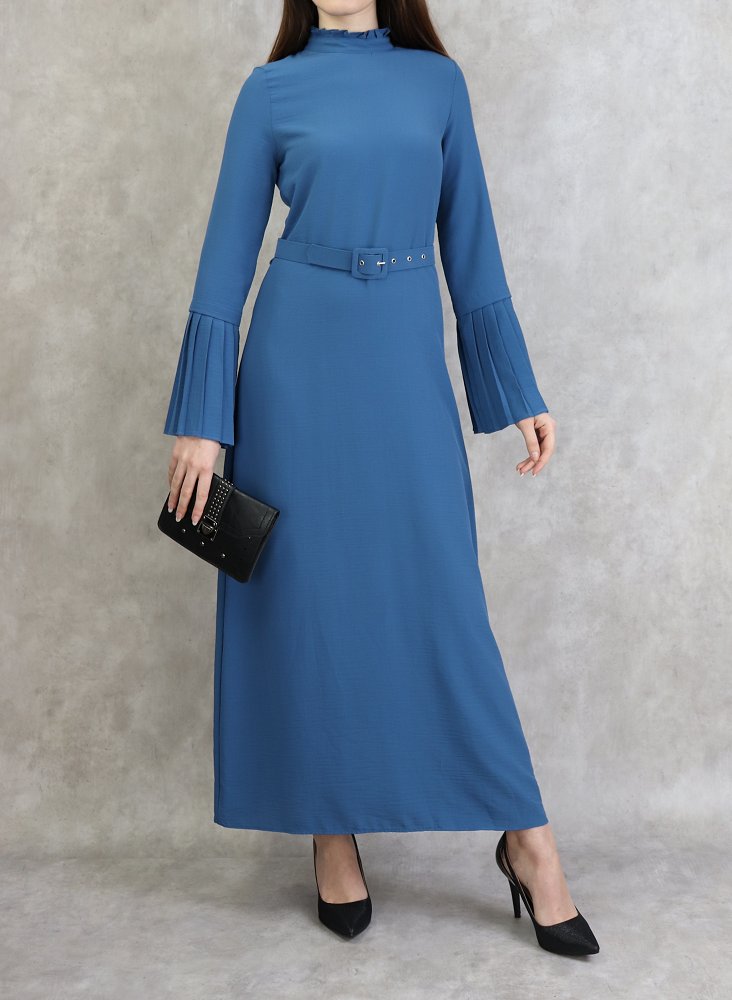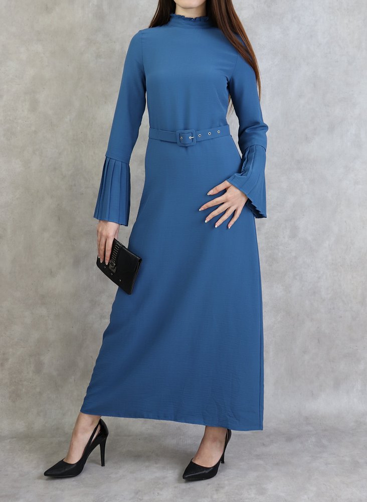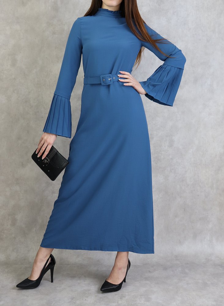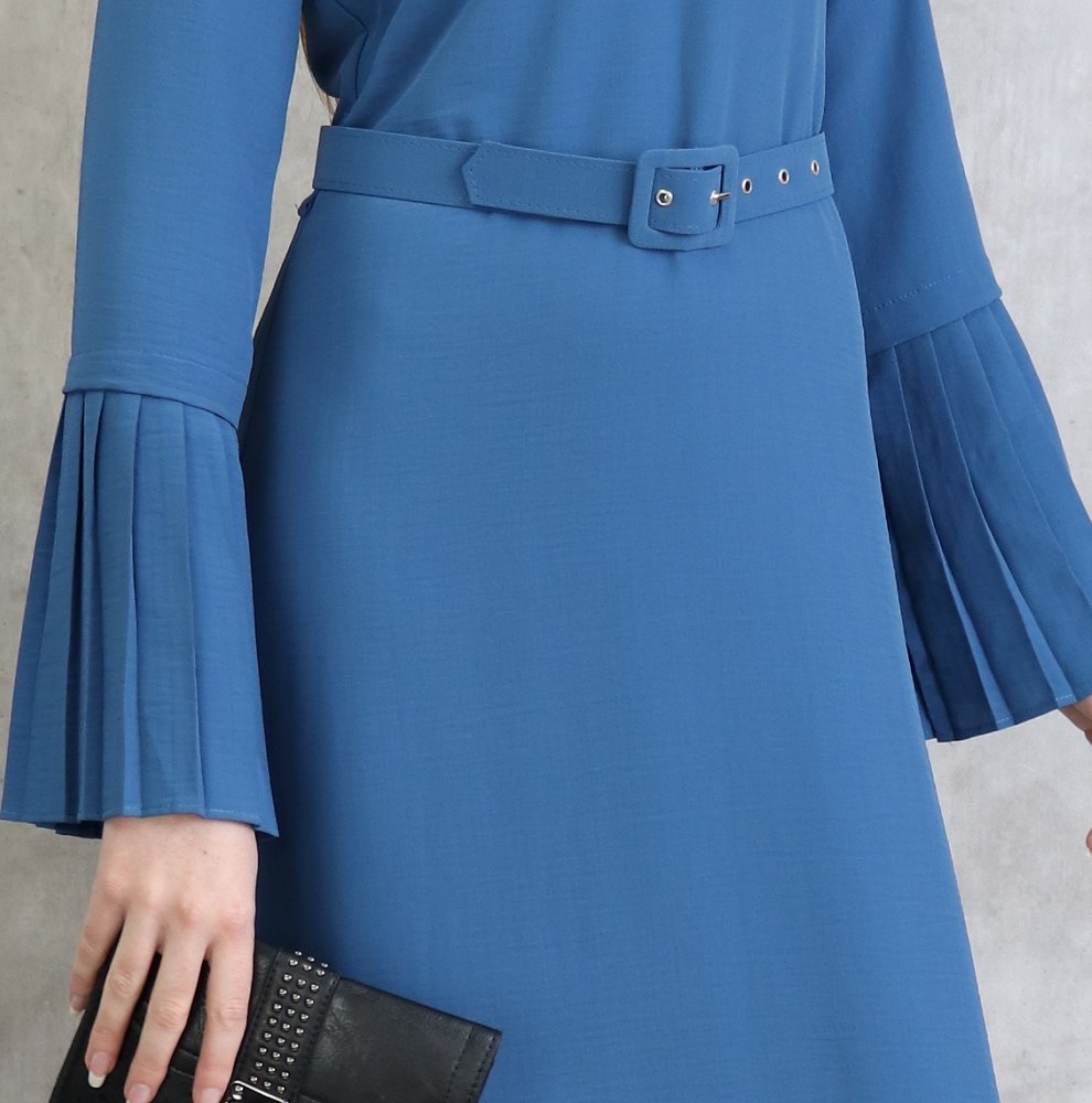 Robe classique et élégante manches plissées - Couleur Bleu acier Vetement & Accessoire
