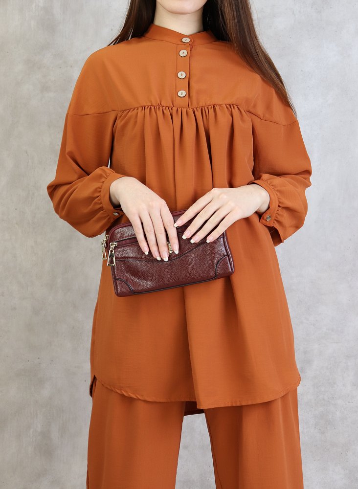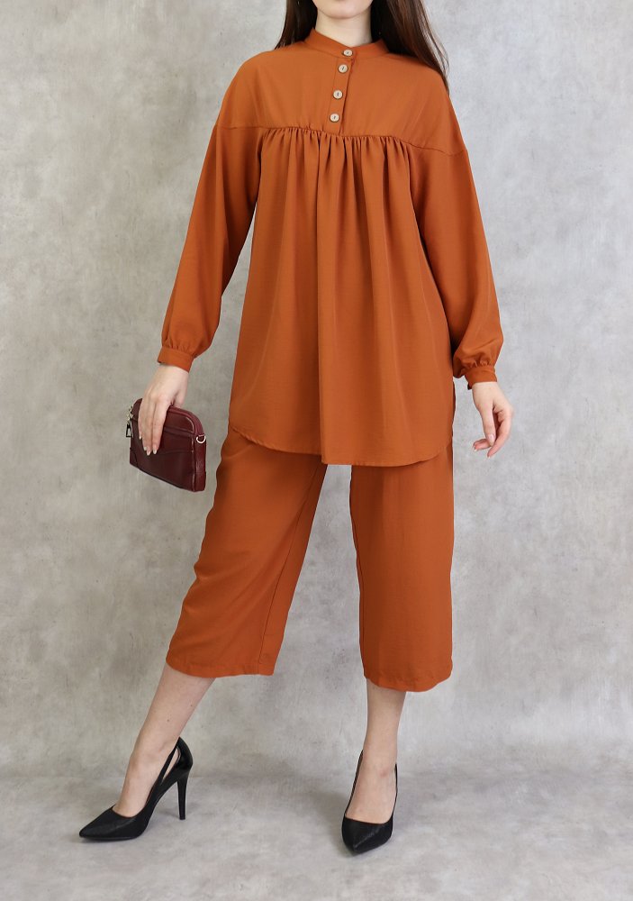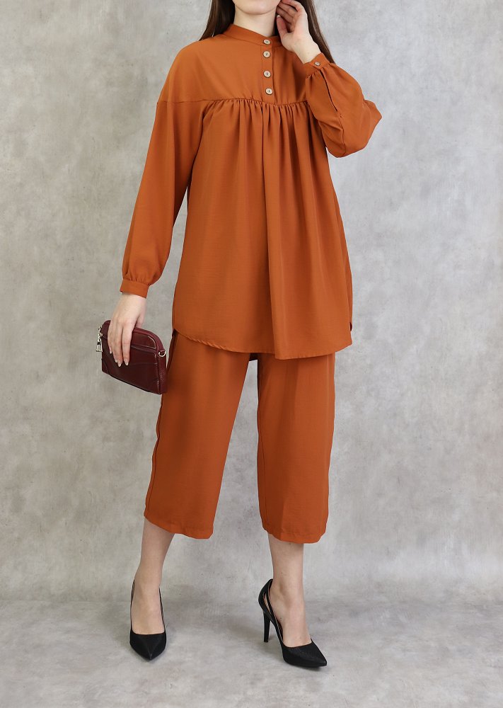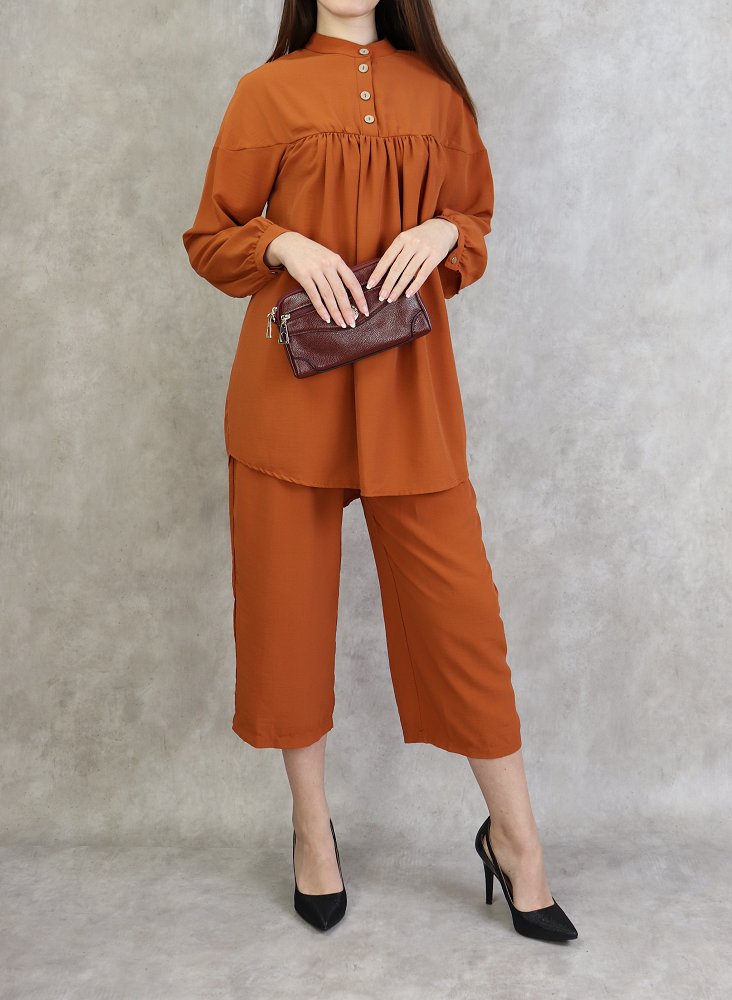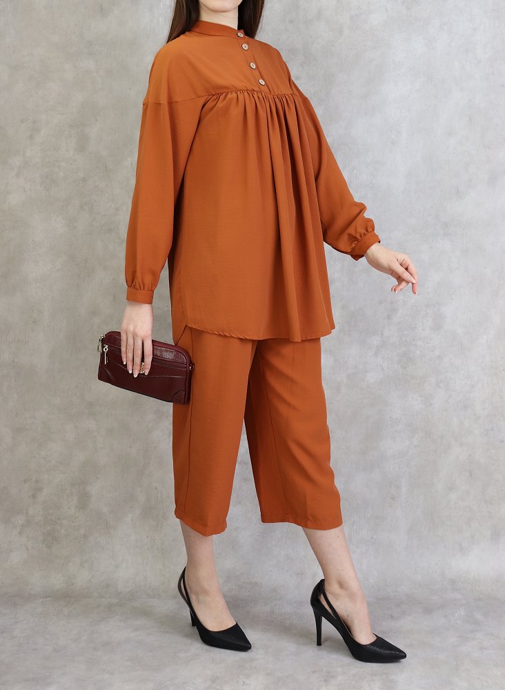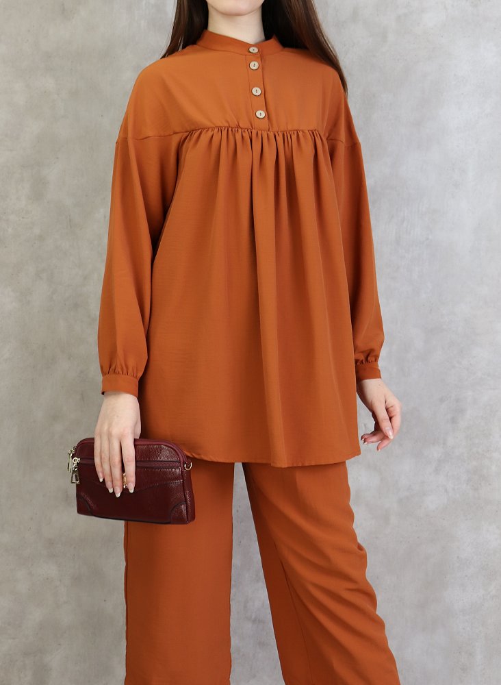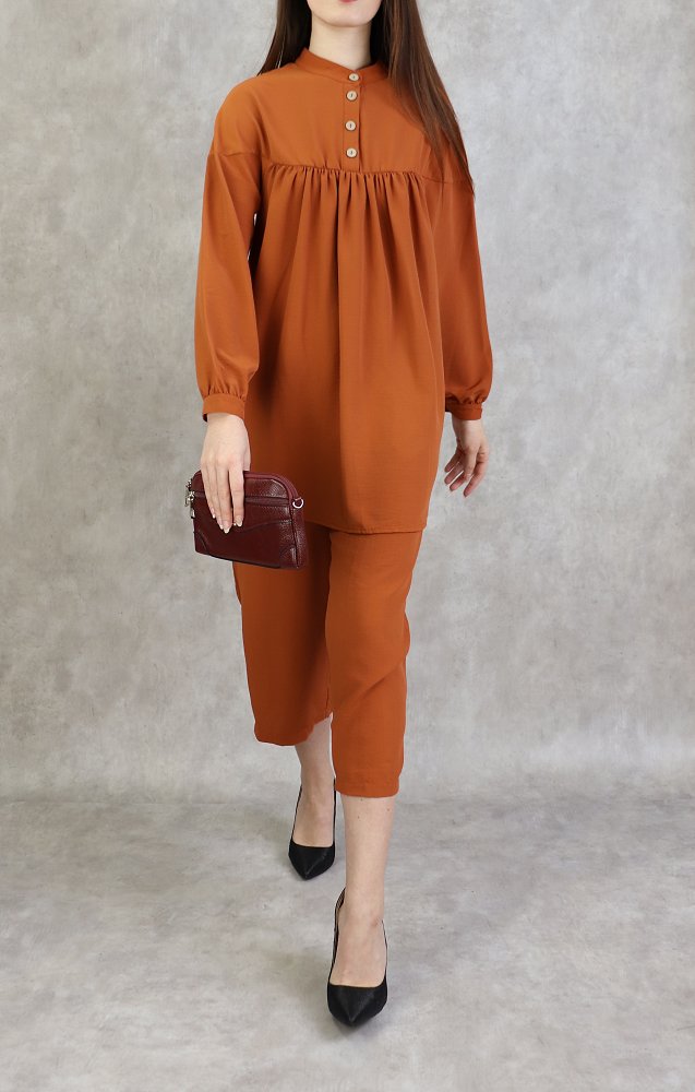 Ensemble 2 pièces ultra chic, tunique ample, manches longue finitions boutonné, col officier, patte de boutonnage, Pantalon large avec plis coupe droite, on aime son tomber irrésistible, fermeture zippée sur le coté..