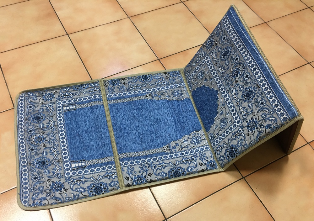 Une idée vraiment originale ! Ce tapis de prière peut se transformer en chaise pour s'adosser et reposer son dos. Pratique à prendre quand on doit passer un long moment à la mosquée ou pour les étudiants en cours à la mosquée, en pèlerinage, etc.