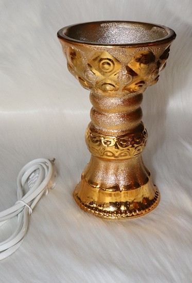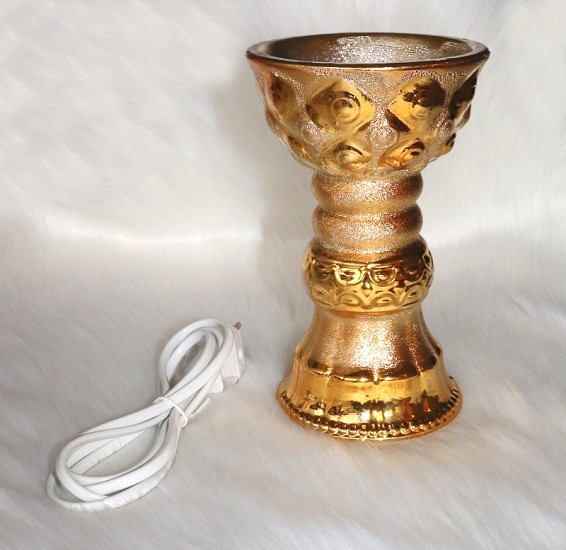 Encensoir électrique de taille moyenne en porcelaine doré pour brûler de l'encens sans utiliser de charbon. Débrancher l'encensoir dès que l'encens a fini de brûler ne pas le laisser allumé.