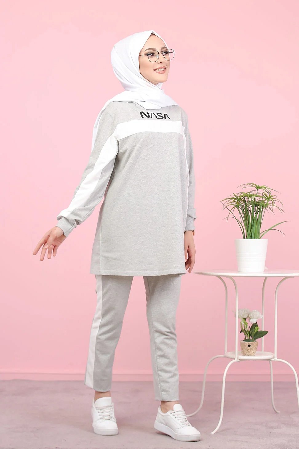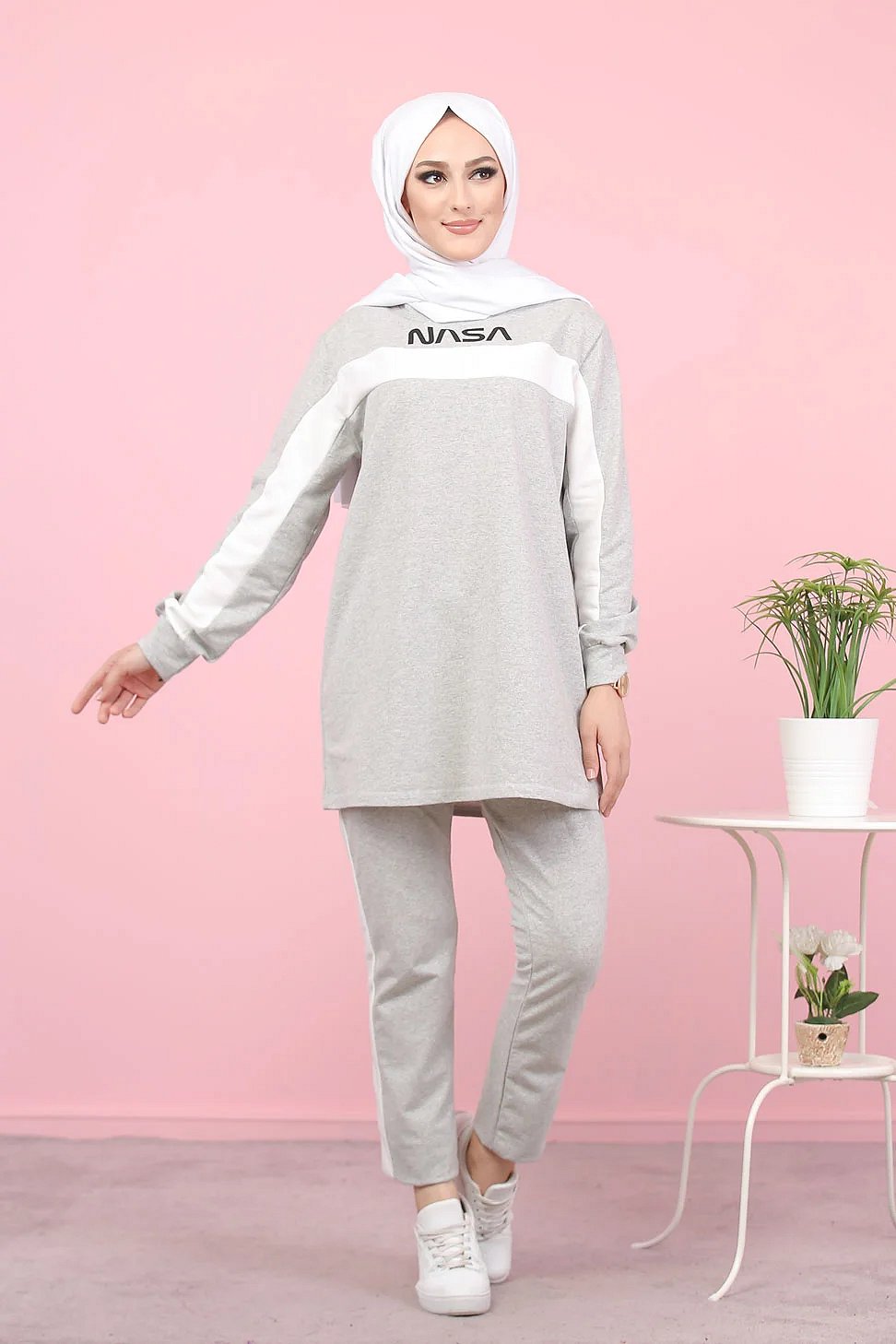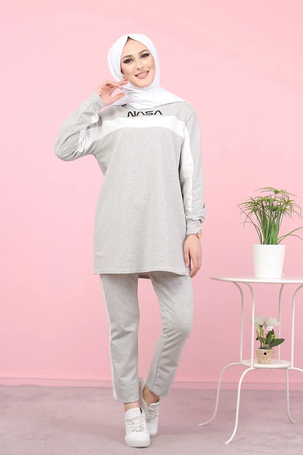Ensemble survêtement imprimé "NASA" - Tenue pour femme voilée (Hijab sport Turquie pas cher) - Couleur gris clair Vetement & Accessoire