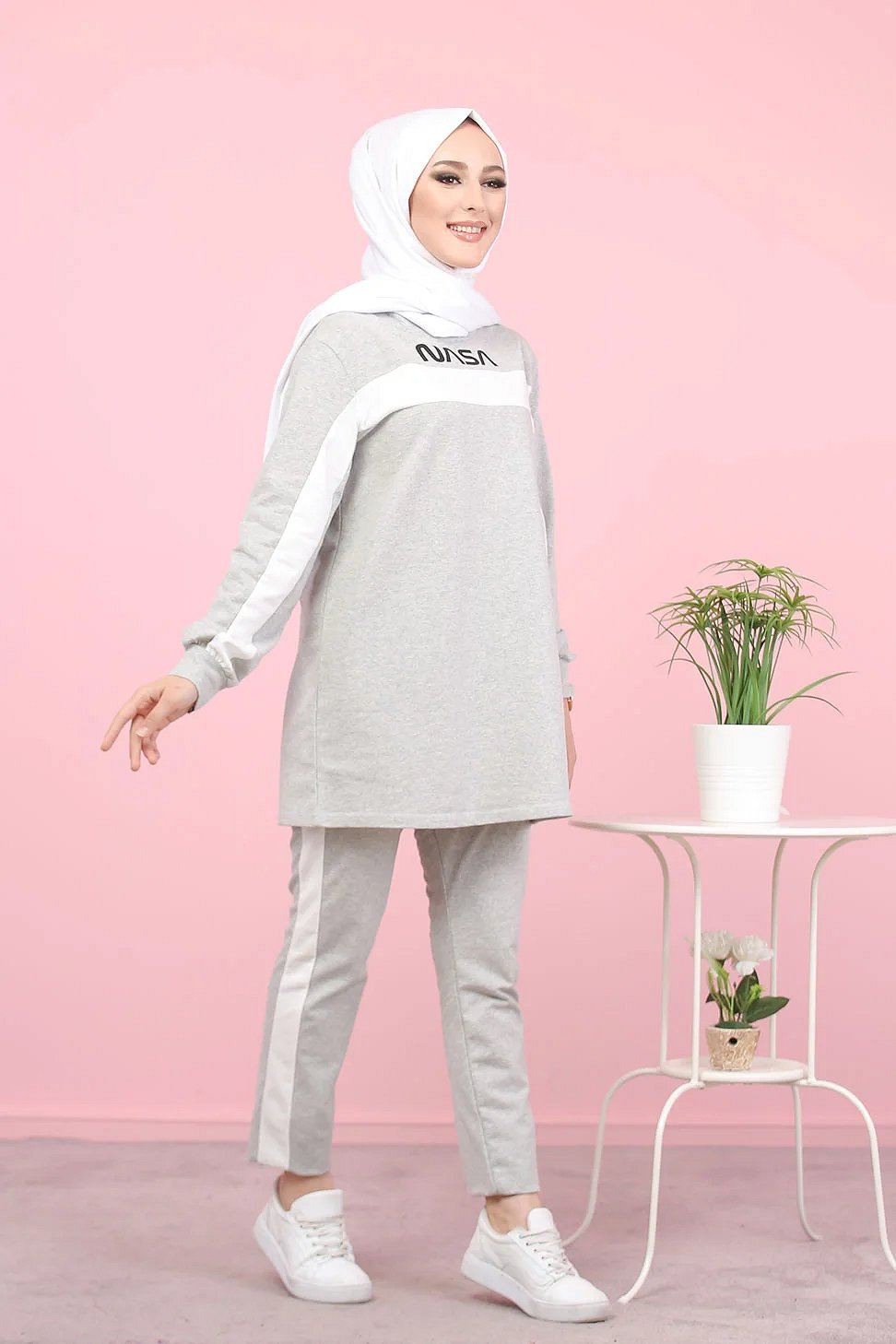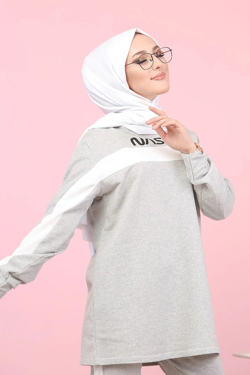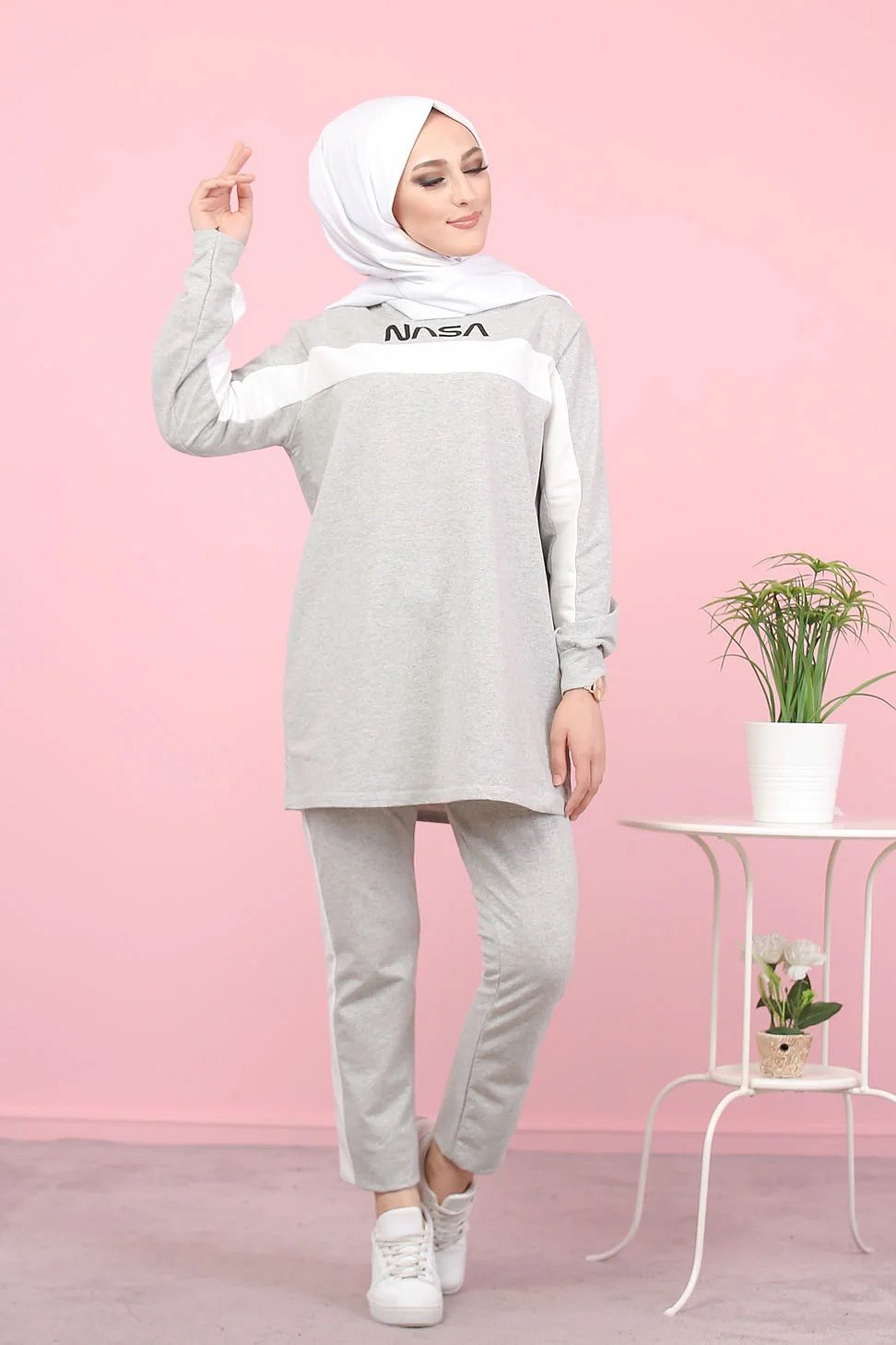 Ensemble survêtement imprimé "NASA" - Tenue pour femme voilée (Hijab sport Turquie pas cher) - Couleur gris clair Vetement & Accessoire