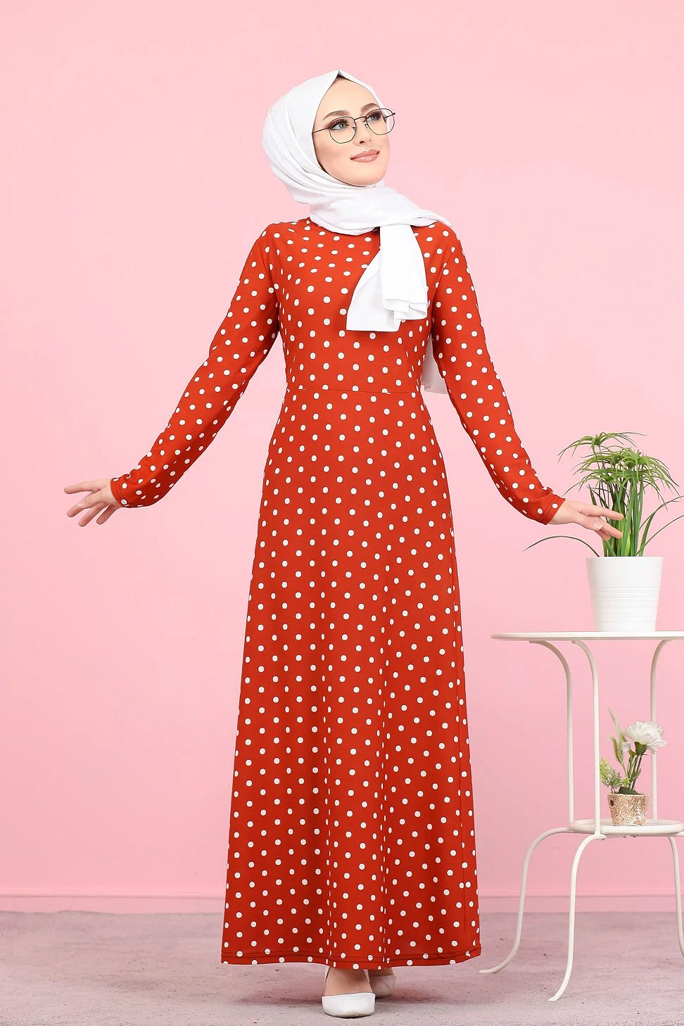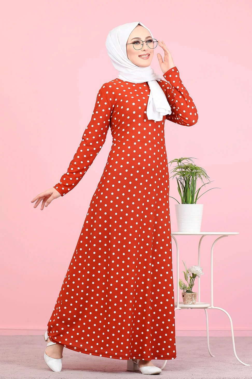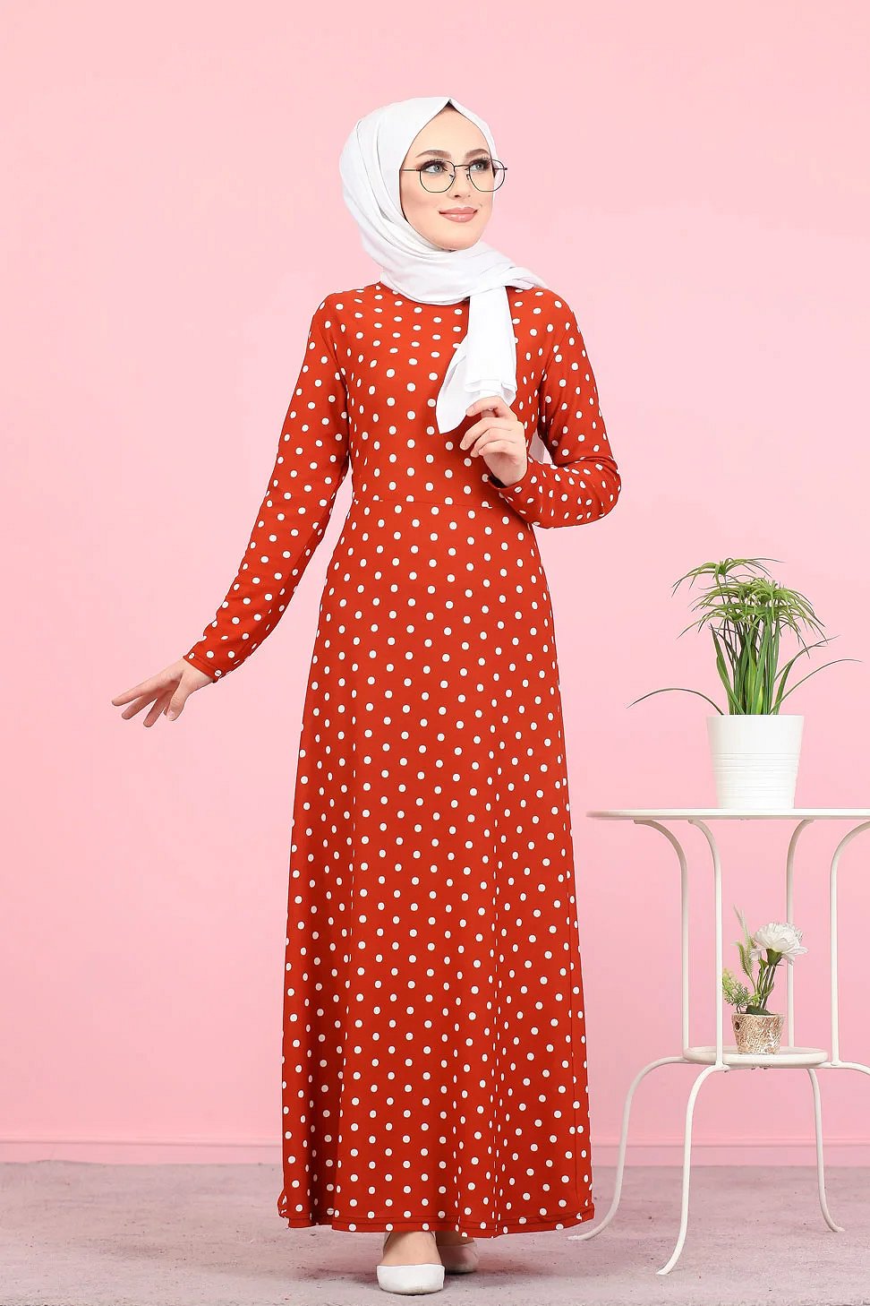 Robe longue a pois pour femme (Vetement musulman chic) - Couleur rouille