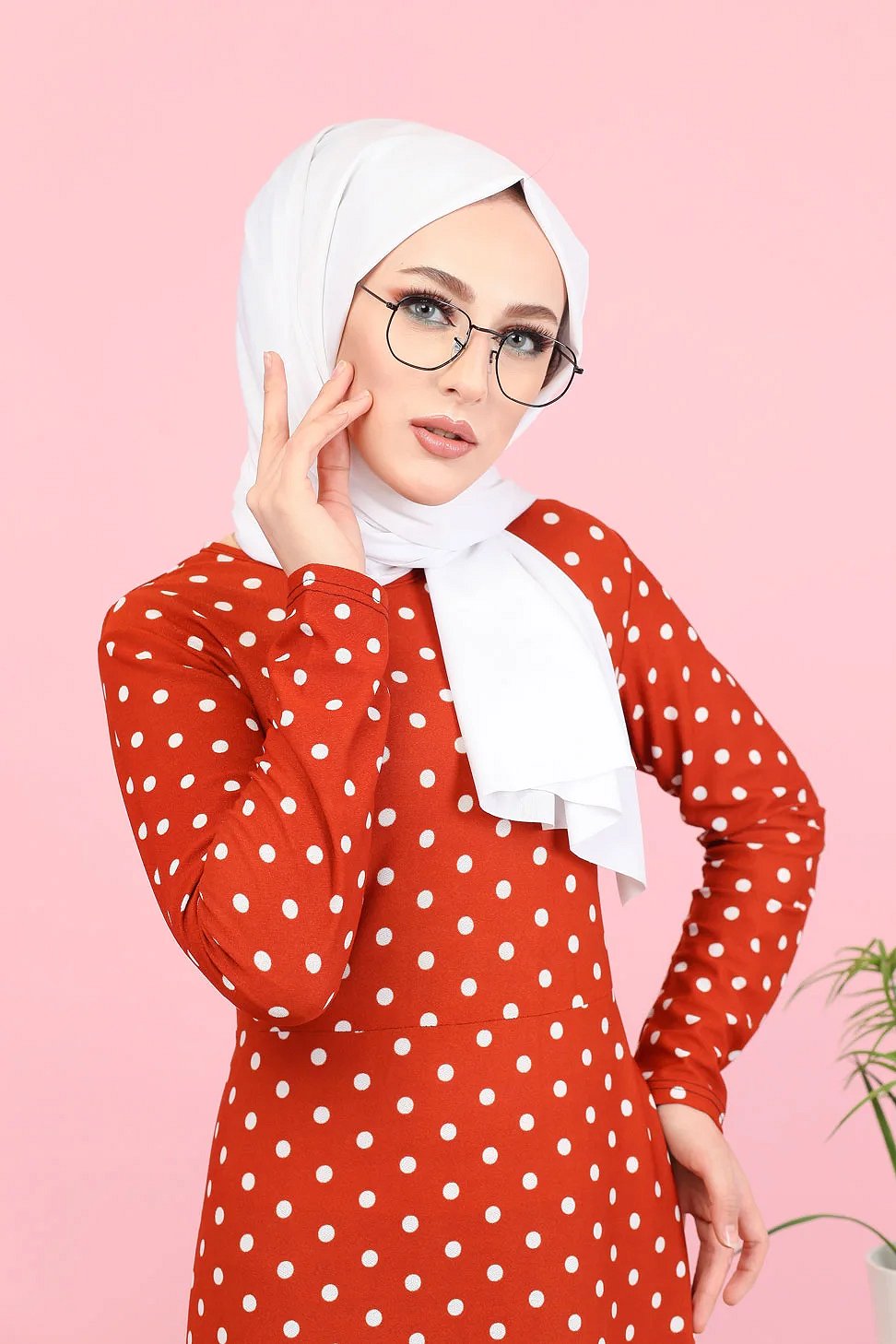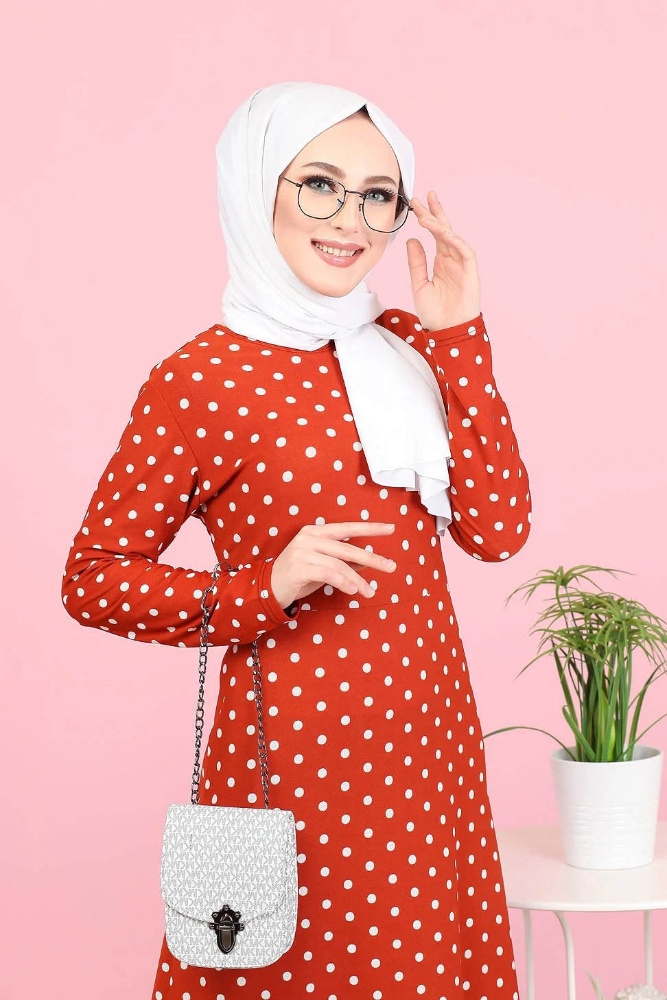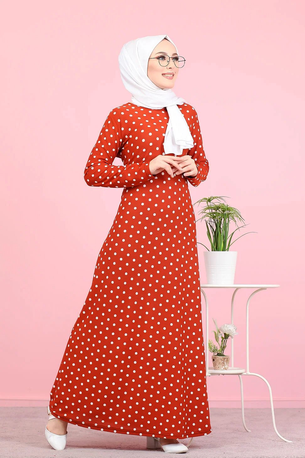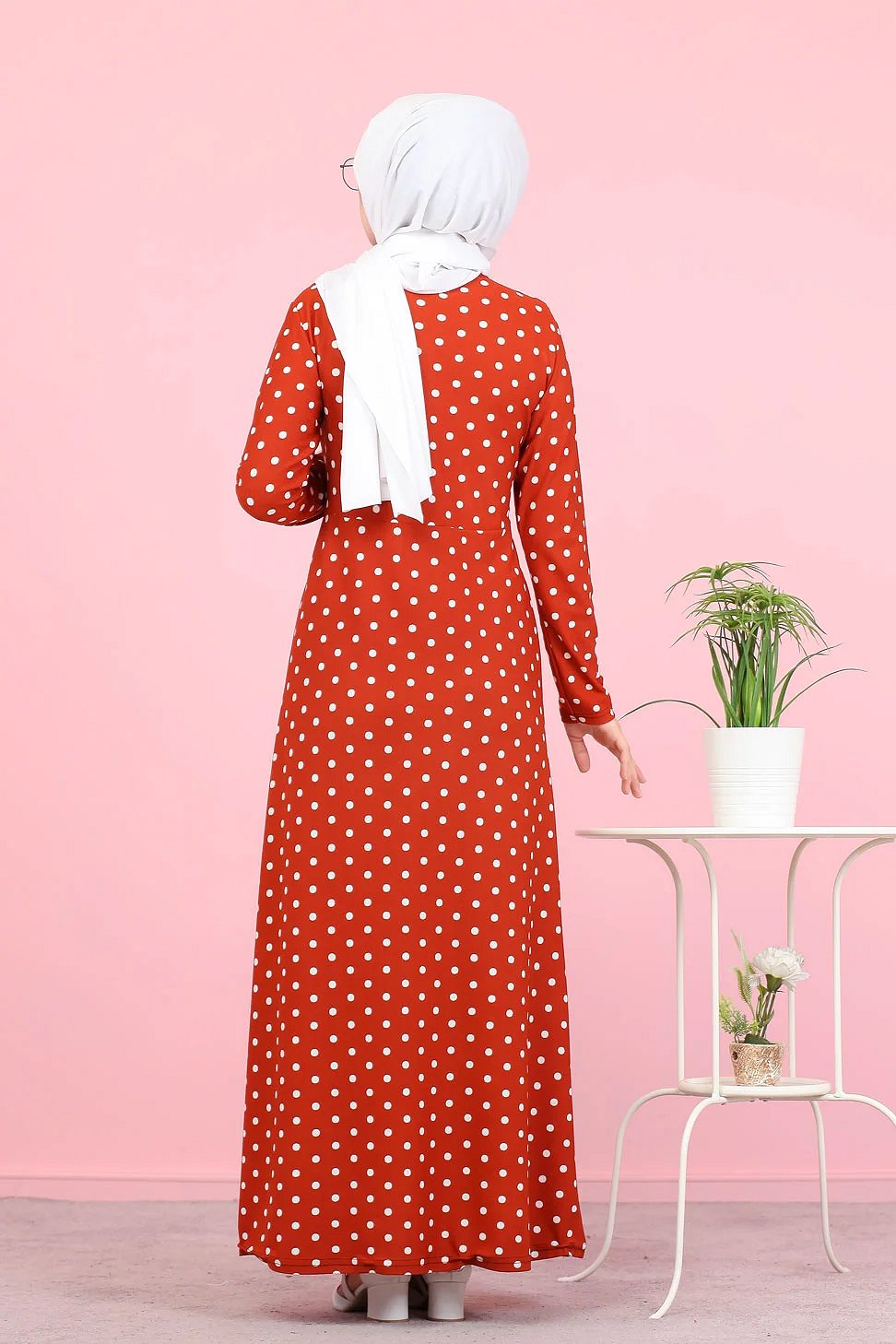 Robe longue a pois pour femme (Vetement musulman chic) - Couleur rouille