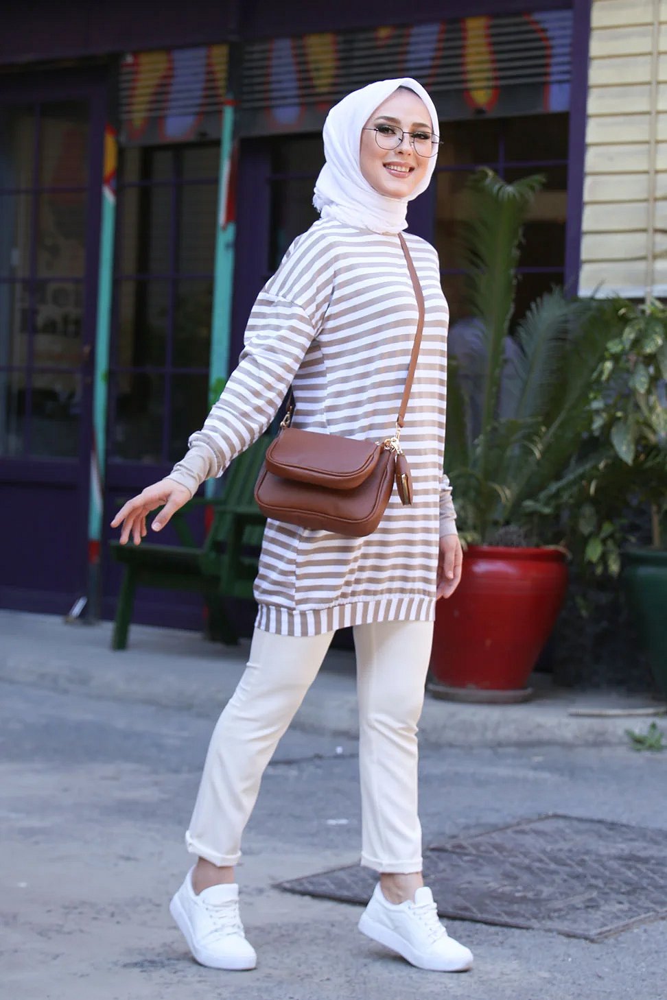 Tunique ample style décontracté et sport (Tenue Hijab moderne) - Couleur sable - REF. 35505 (25.00 €) - En Promotion à 19.90 €