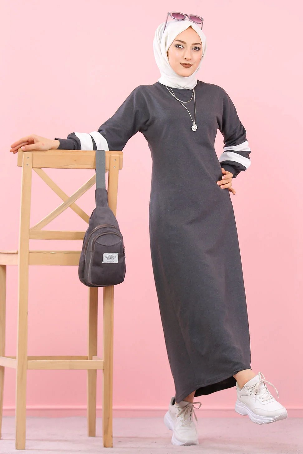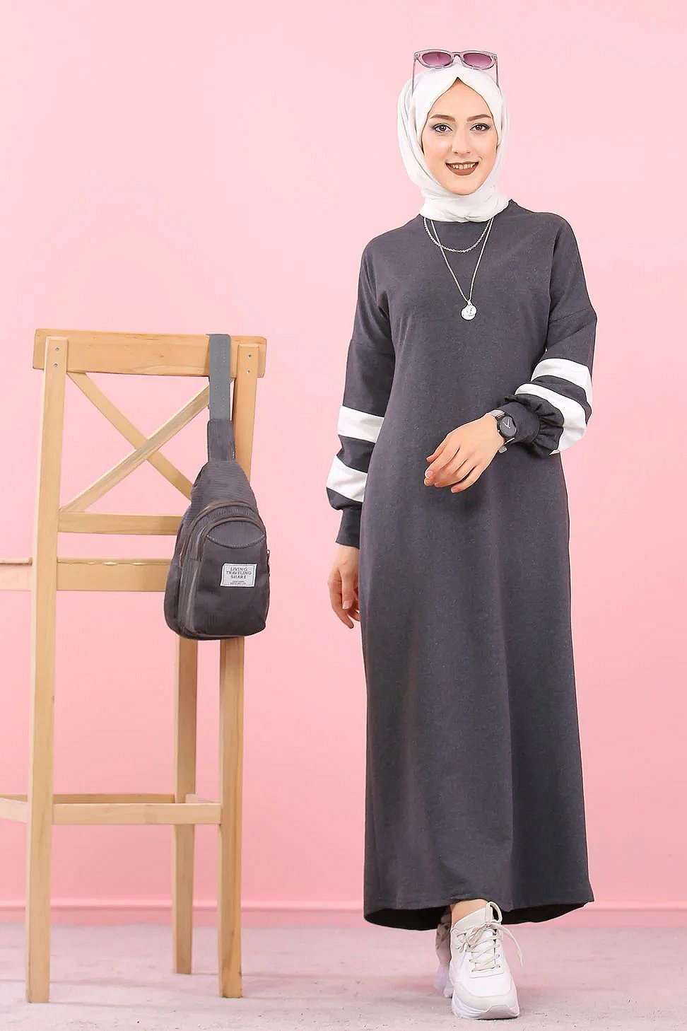 Robe type sportswear adaptée pour femme voilée musulmane.