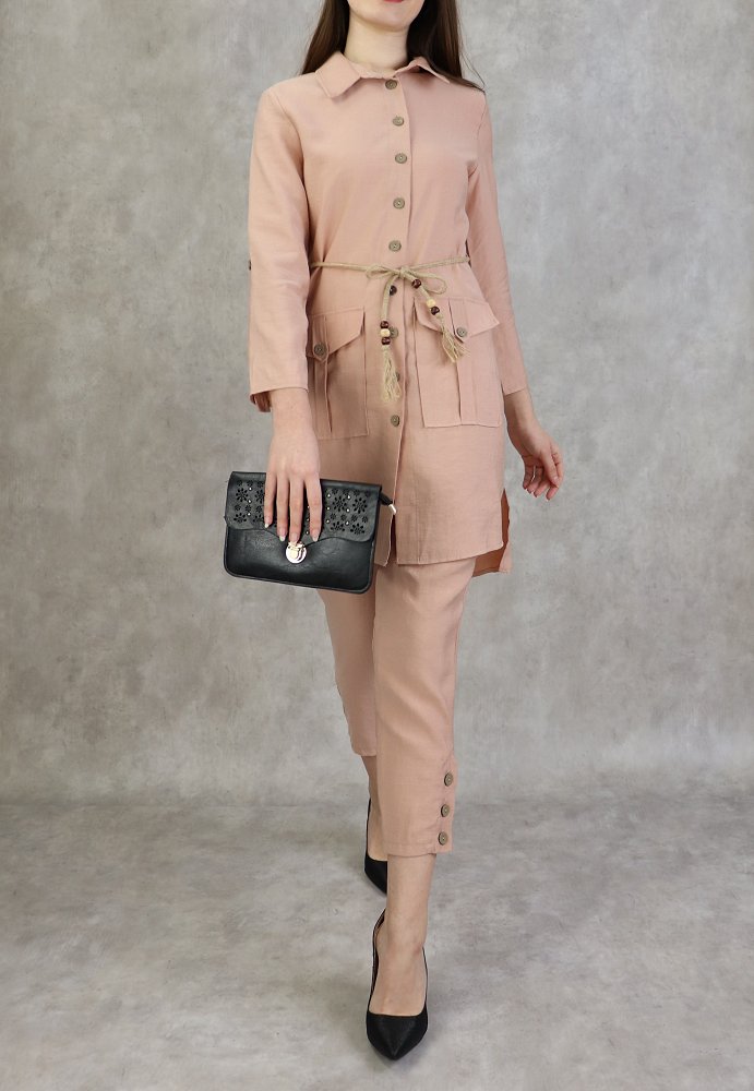 Ensemble Tunique et Pantalon avec Ceinture - Couleur rouille (Vêtements modernes - Marque Amelis Paris)
