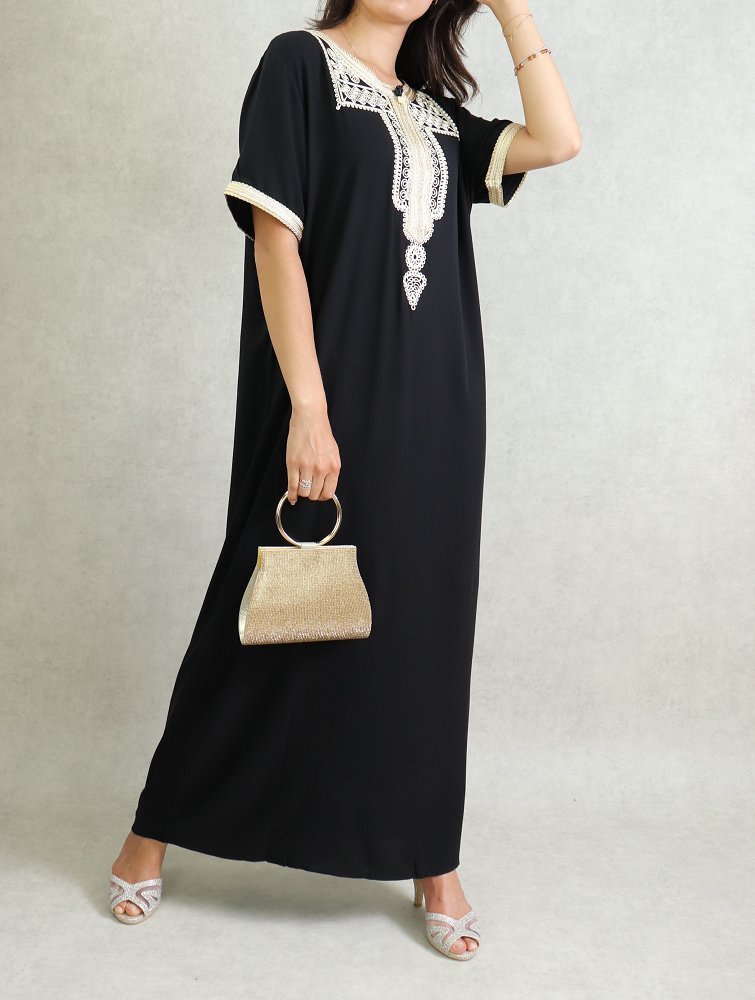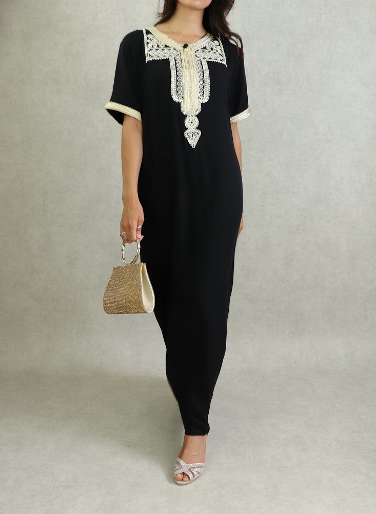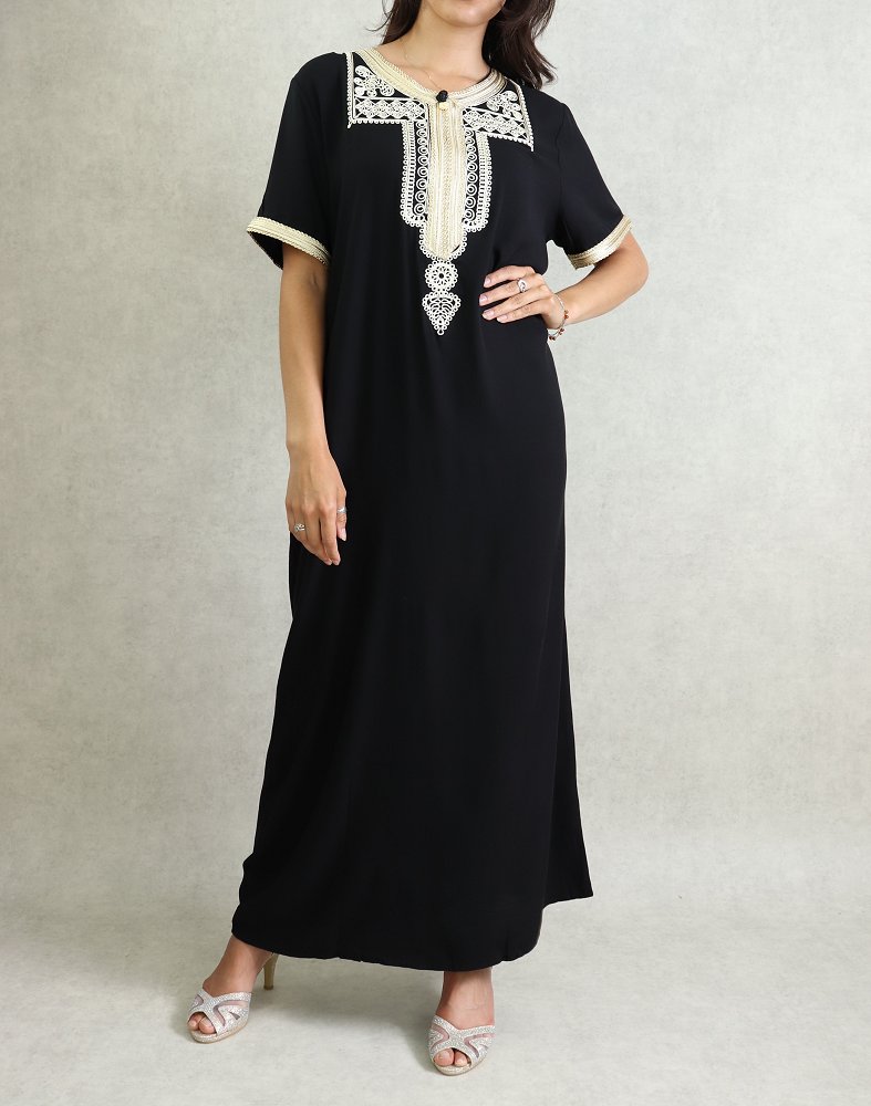 Robe marocaine d'été manches courtes avec broderies - (Plusieurs couleurs disponibles) Vetement & Accessoire