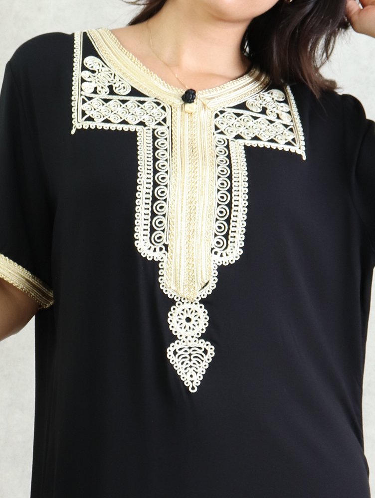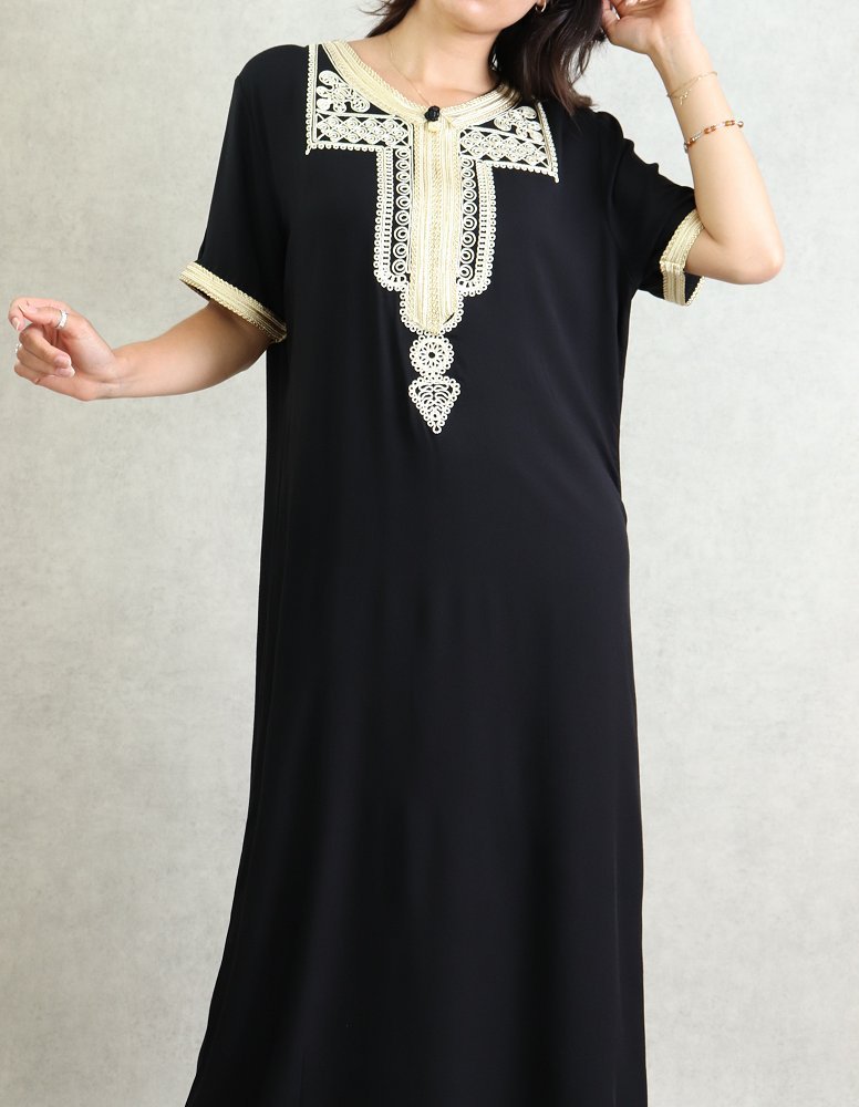 Robe marocaine d'ete manches courtes avec broderies - (Plusieurs couleurs disponibles)