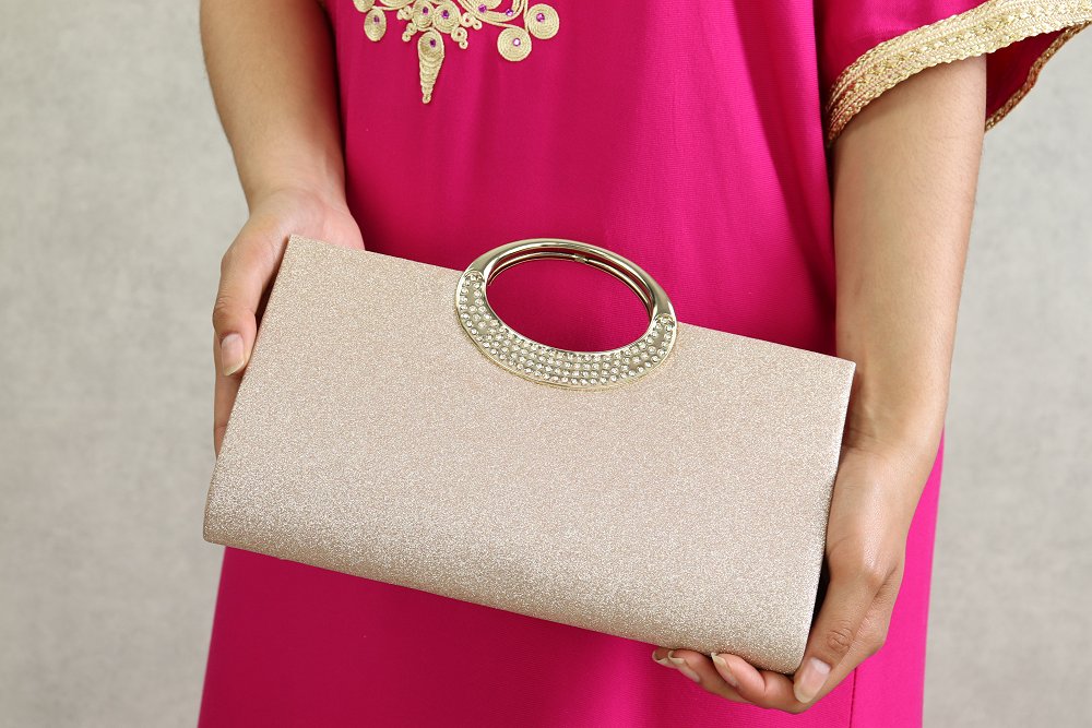 Pochette de soirée à poignet métallique - Sac à main tendance pour femme - Couleur champagne Vetement & Accessoire