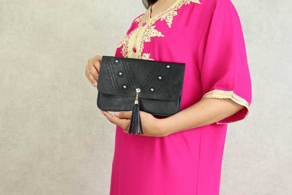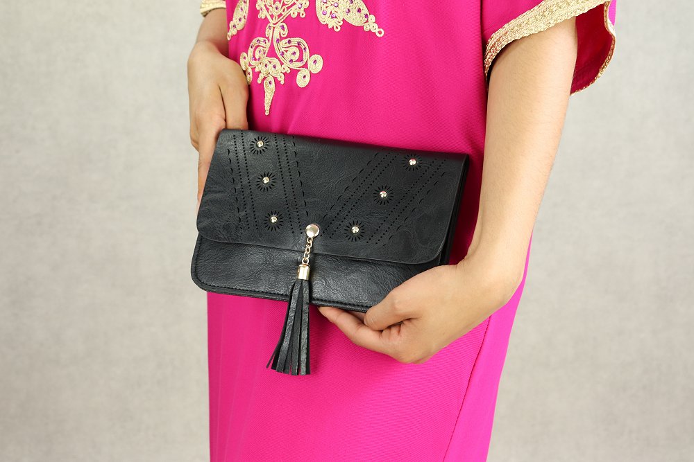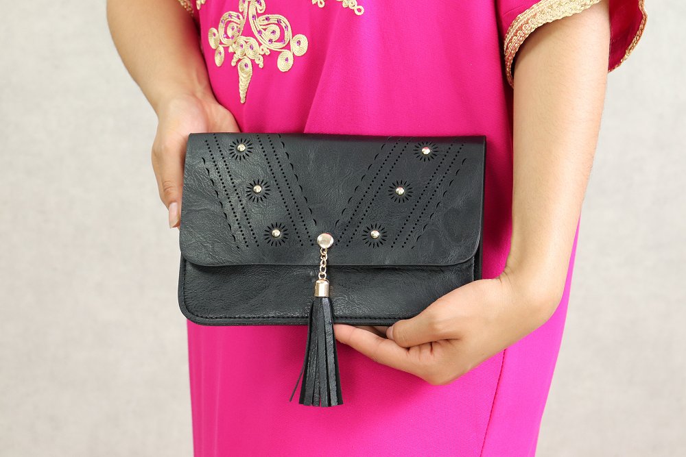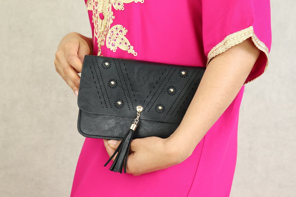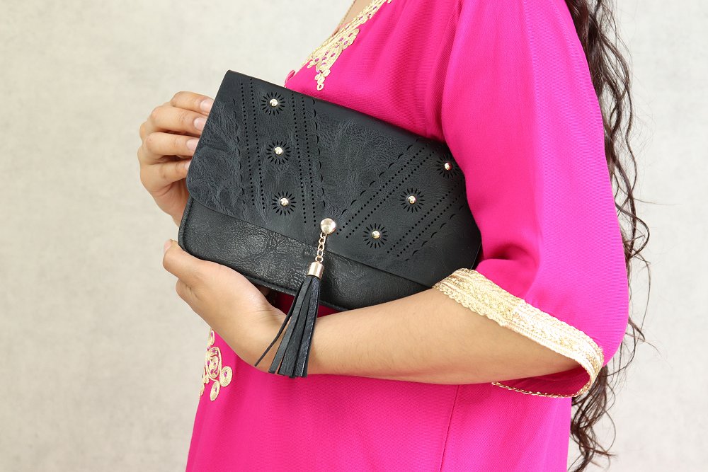 Sac à main femme - Pochette brodée embrayage chic - Couleur Noir - REF. 32166 (12.90 €)
