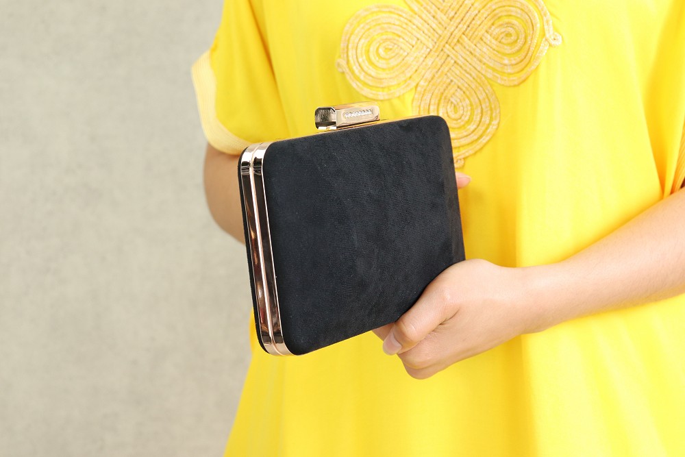 Pochette rigide-Sac à main en daim pour femme - Couleur noire Vetement & Accessoire
