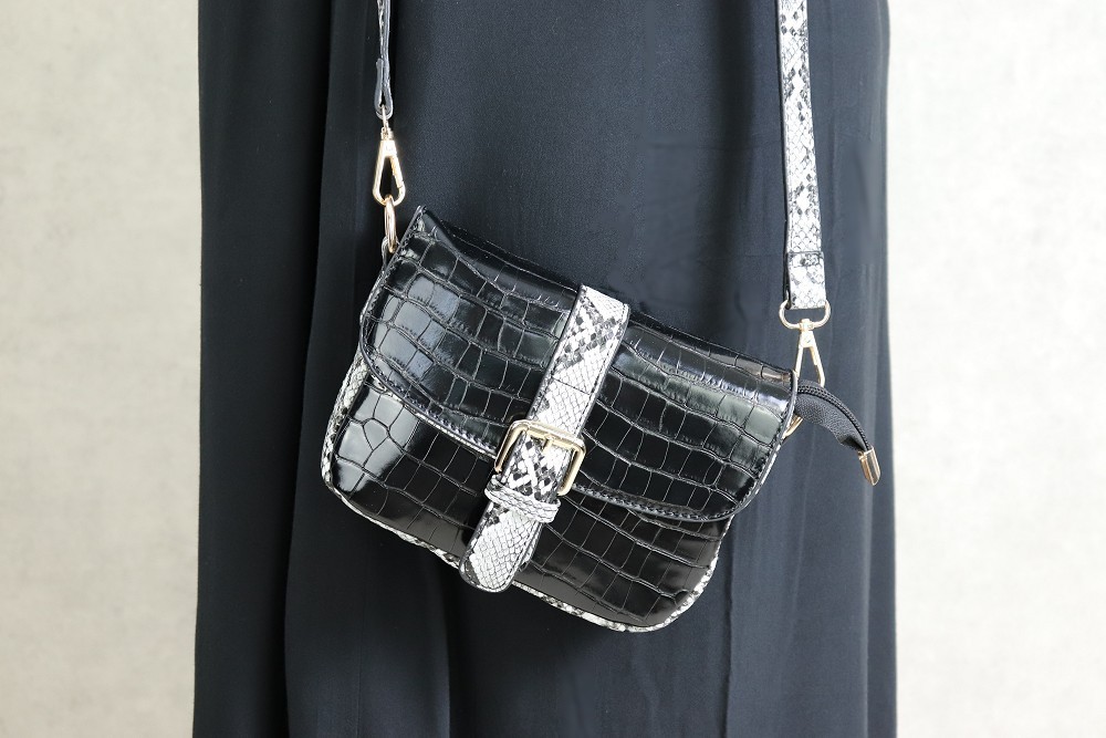 Sac à main noir pour femmes imitation crocodile - REF. 8233 (22.00 €) - En Promotion à 12.50 €