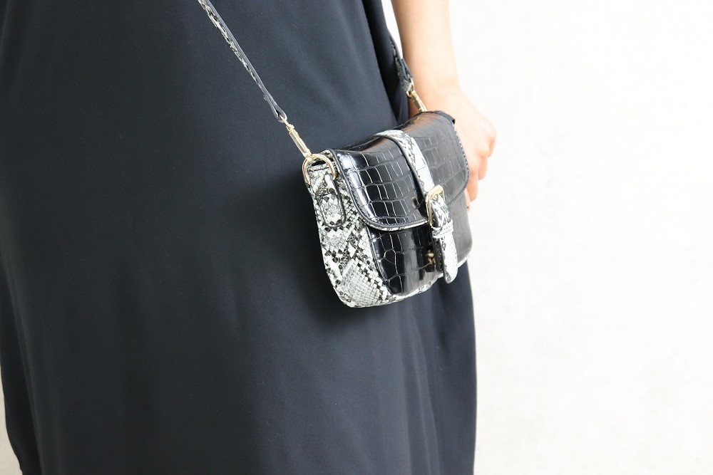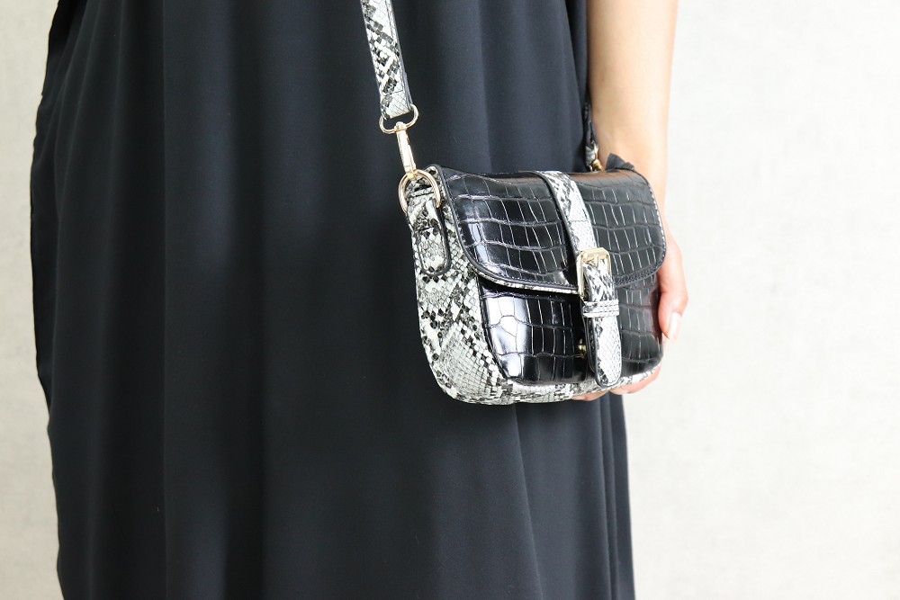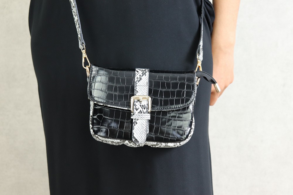Sac à main pour femme avec parti en motif peau de Python - Couleur noir Vetement & Accessoire