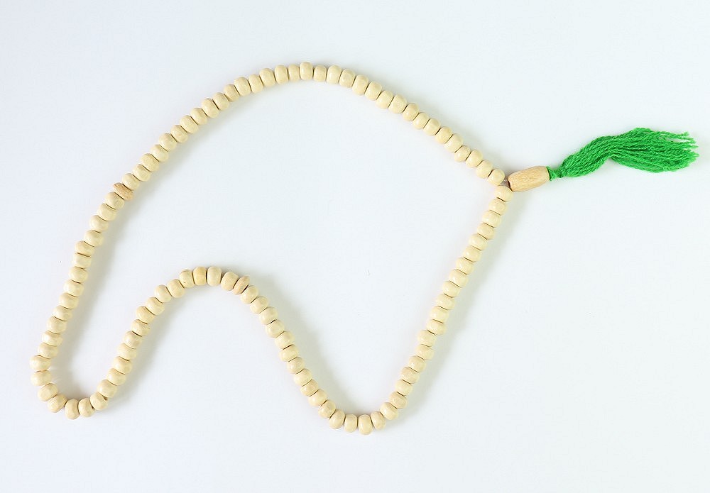 Chapelet artisanal en bois (Sabha) à 99 grains. Avec séparateur tous les 33 grains.