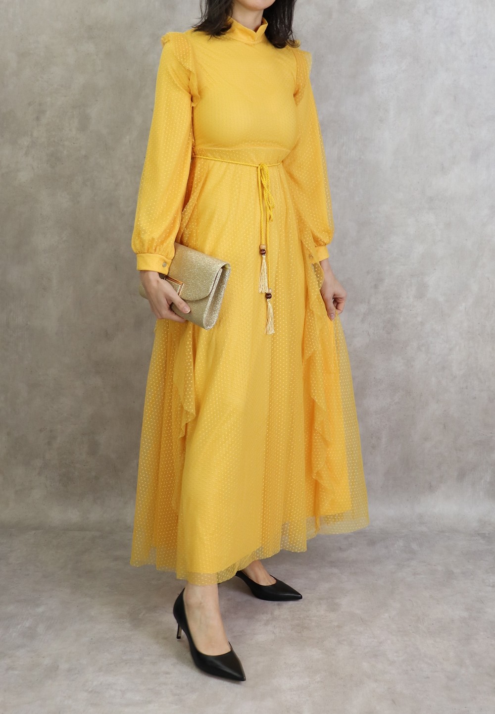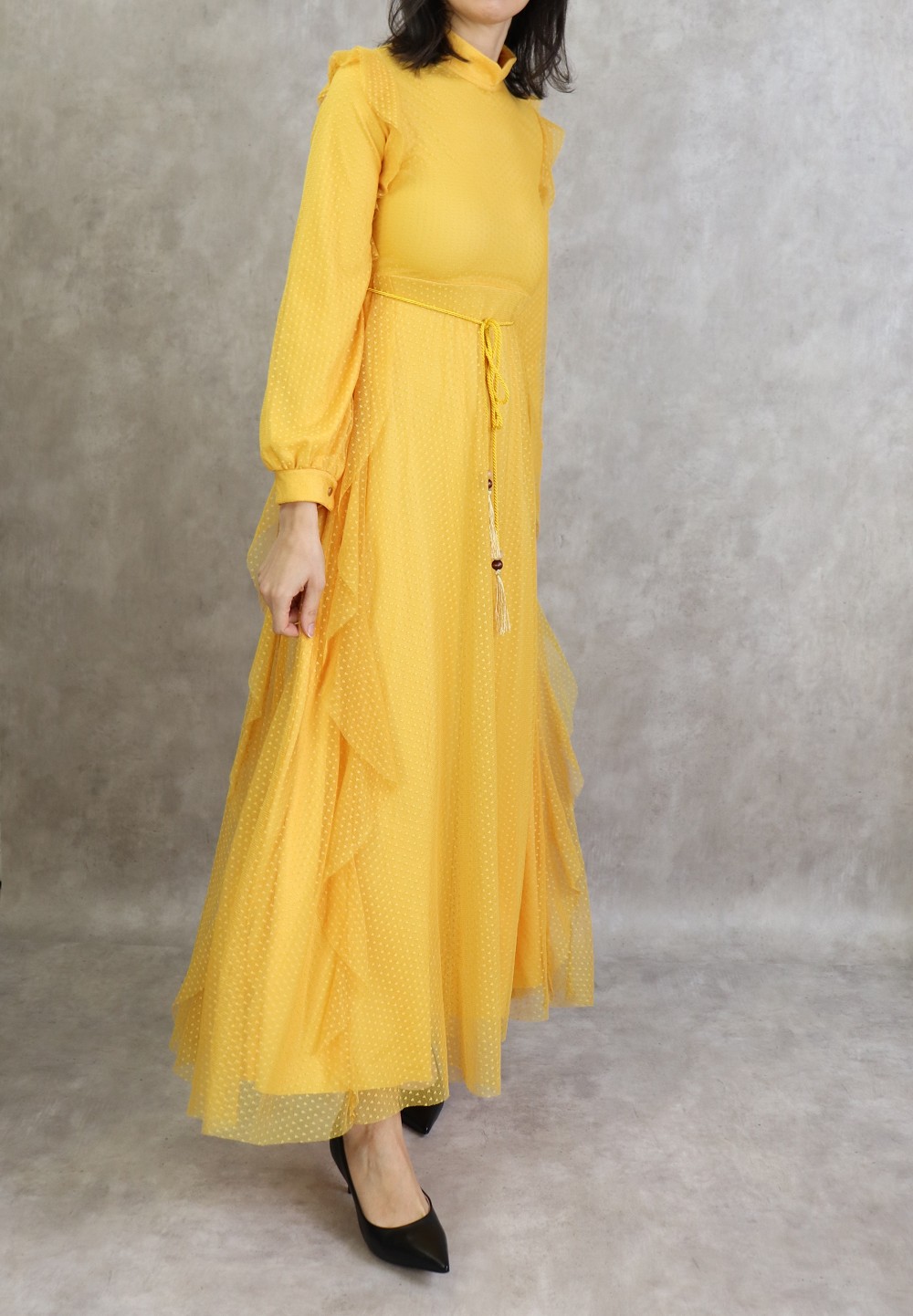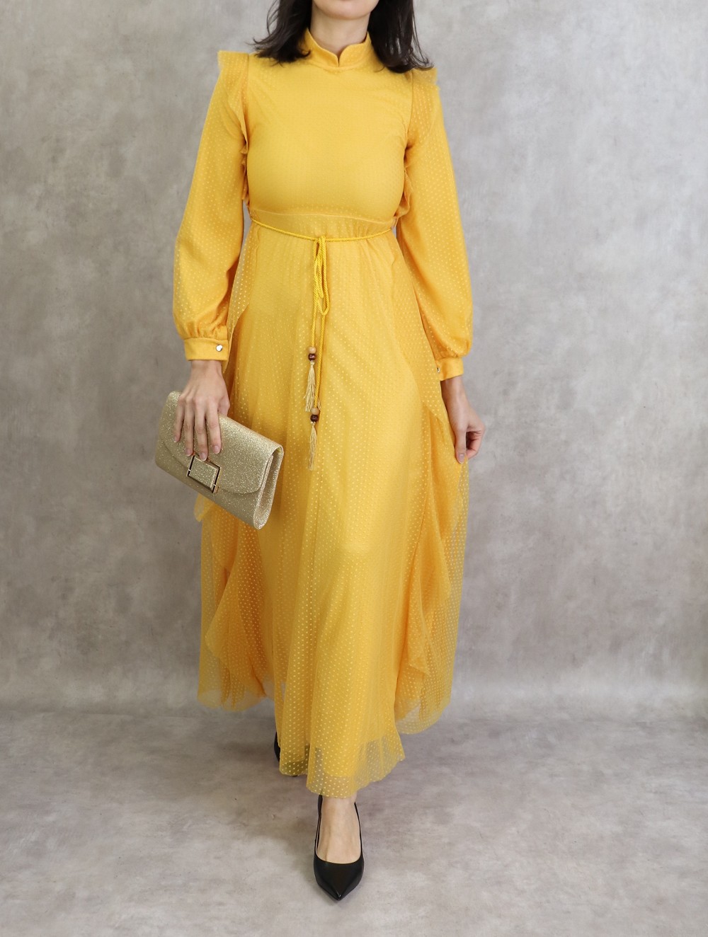 Robe de soirée longue en tulle habillée pour femme - Couleur Jaune Vetement & Accessoire