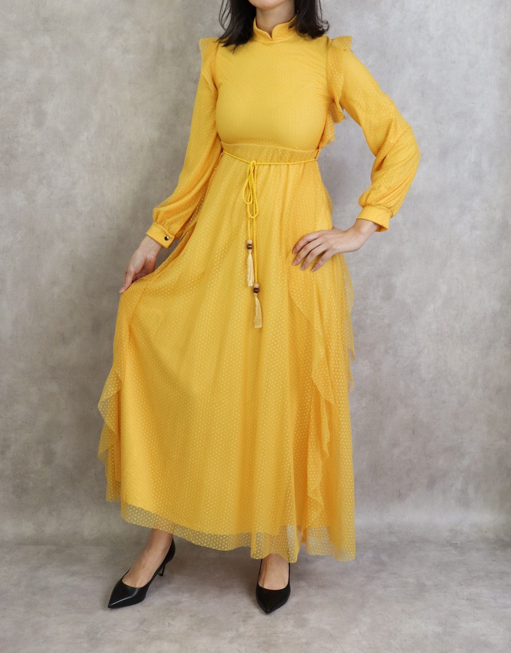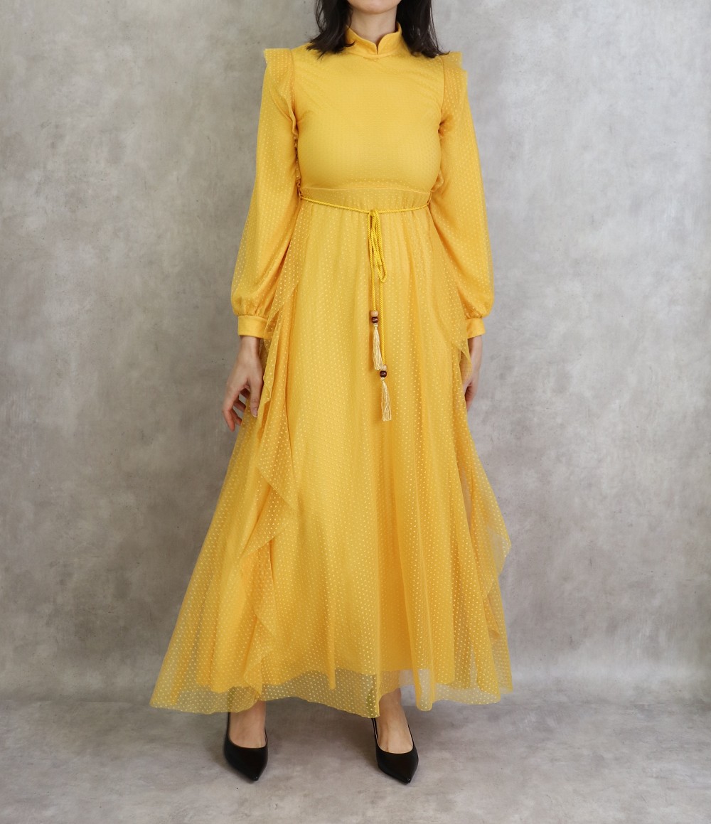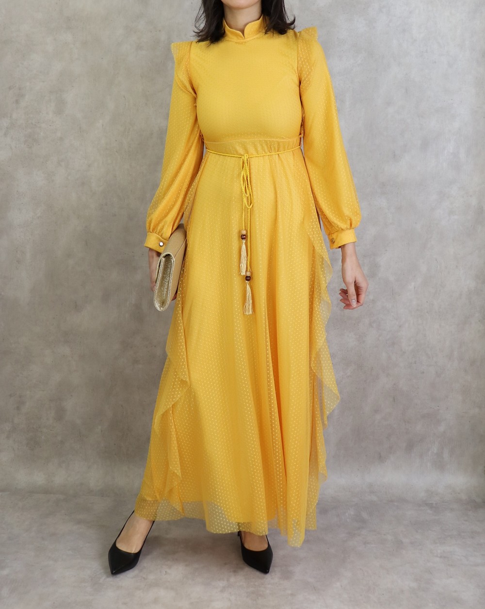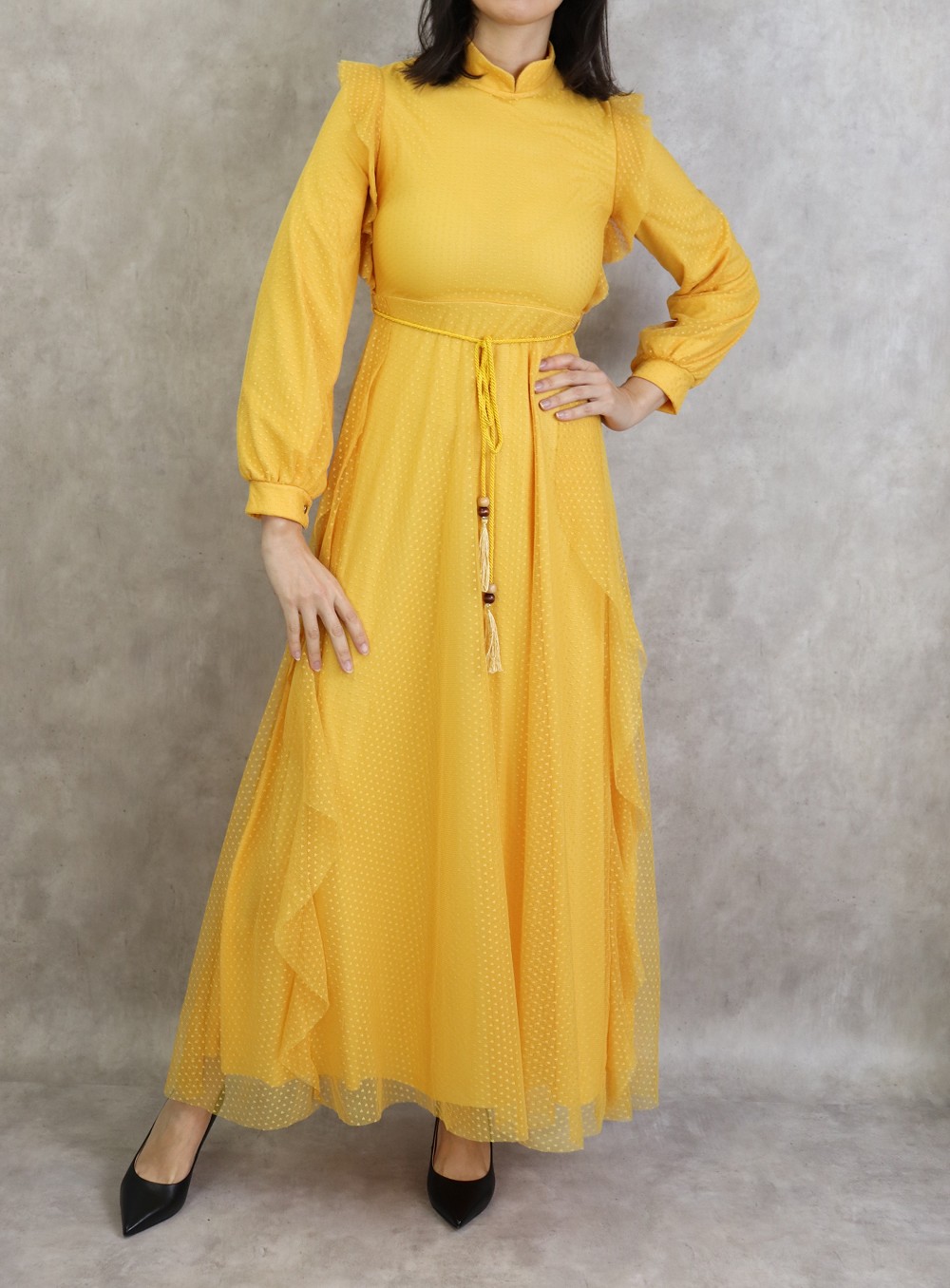 Robe de soirée longue en tulle habillée pour femme - Couleur Jaune Vetement & Accessoire