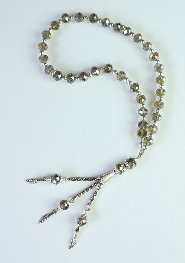 Sabha Chapelet 33 perles cristal fumé avec décorations métalliques argentées - Sebha - REF. 14623 (7.50 €)