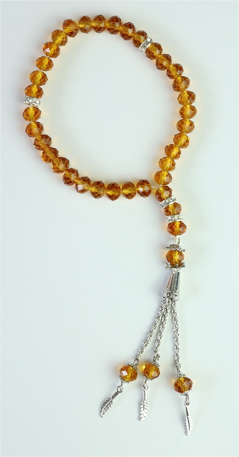 Chapelet (Tasbîh) de luxe à 33 perles en cristal de couleur jaune or avec petites perles argentées - REF. 32731 (7.50 €)