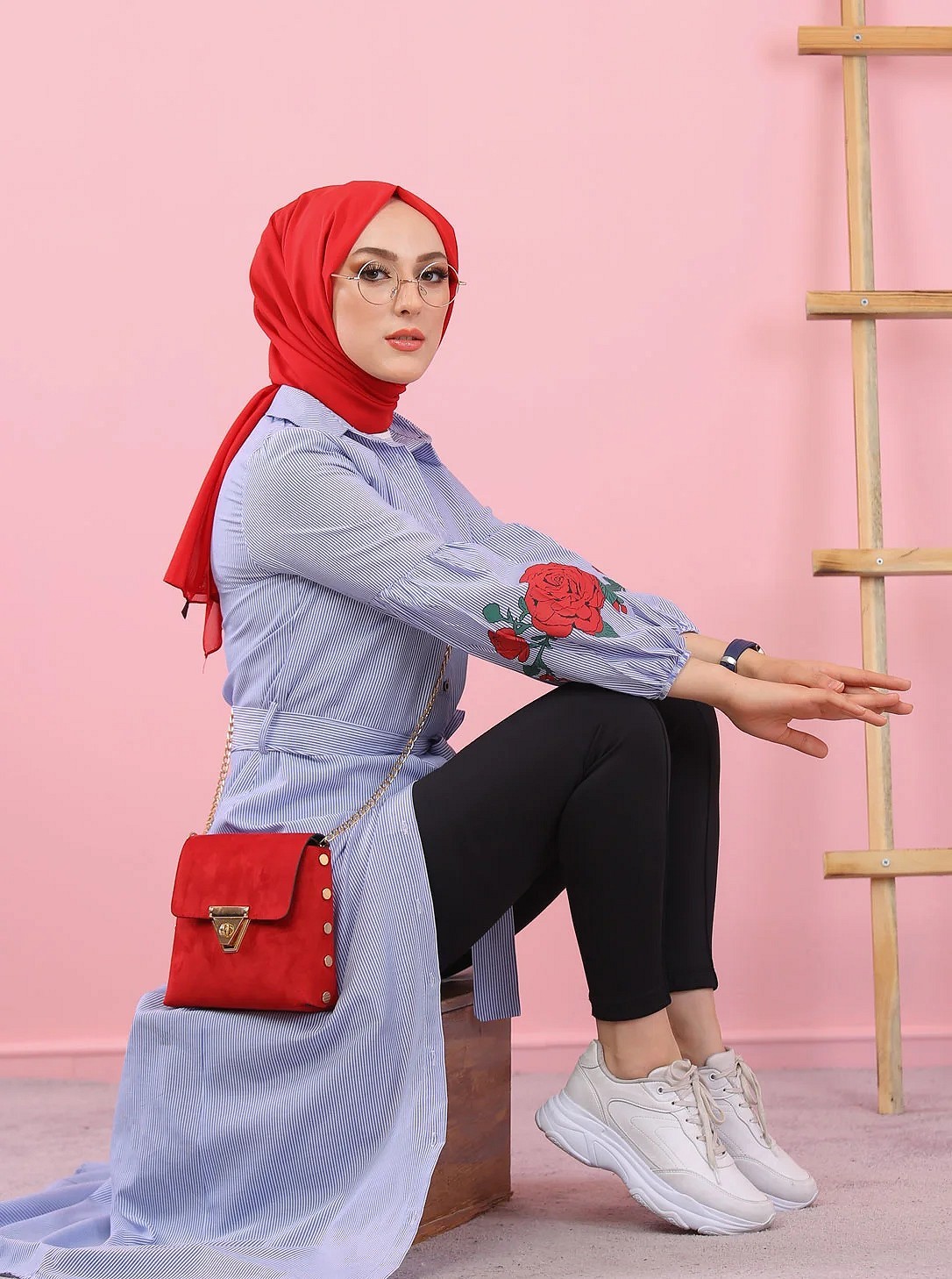 Chemise à froufrou (Vetement femme musulmane en ligne) - Couleur Rouge - REF. 33146 (24.90 €)