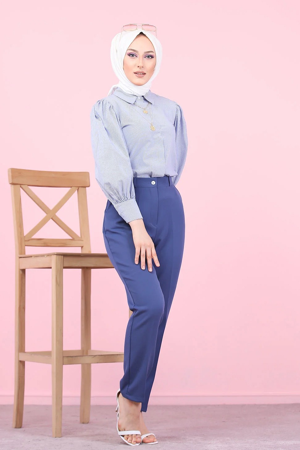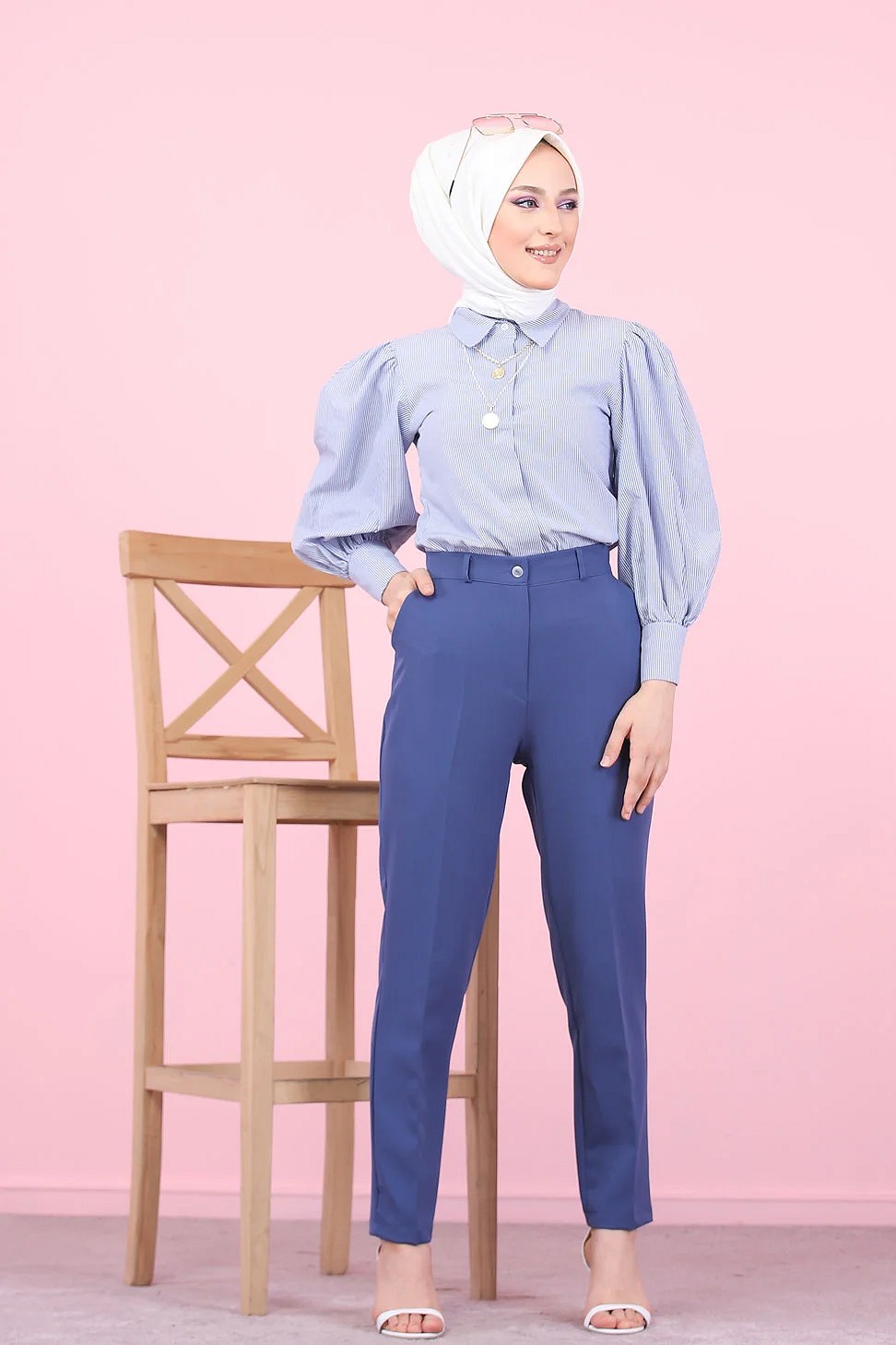 Pantalon cigarette pour femme (Vetement Hijab - Grande taille disponible) - Couleur bleu Vetement & Accessoire