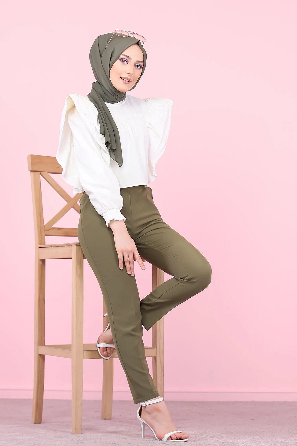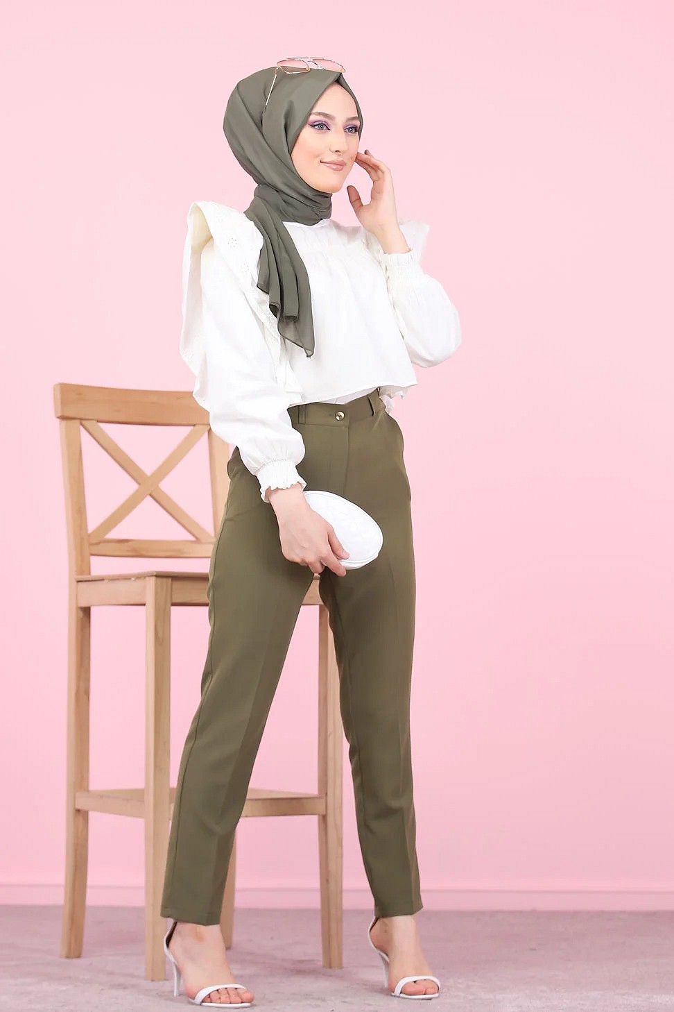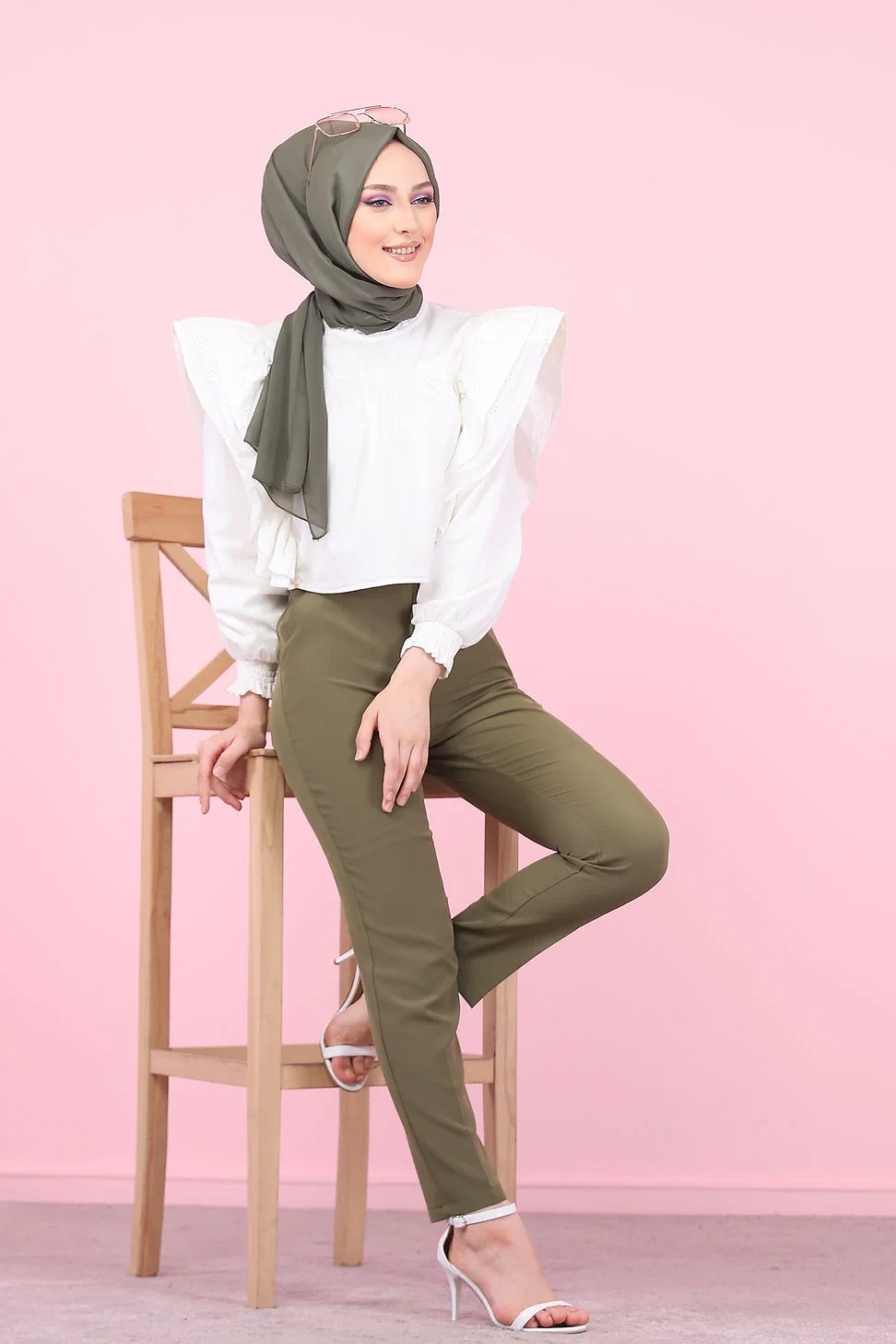 Pantalon cigarette (Vetement femme voilée - Grande taille disponible) - Couleur kaki Vetement & Accessoire