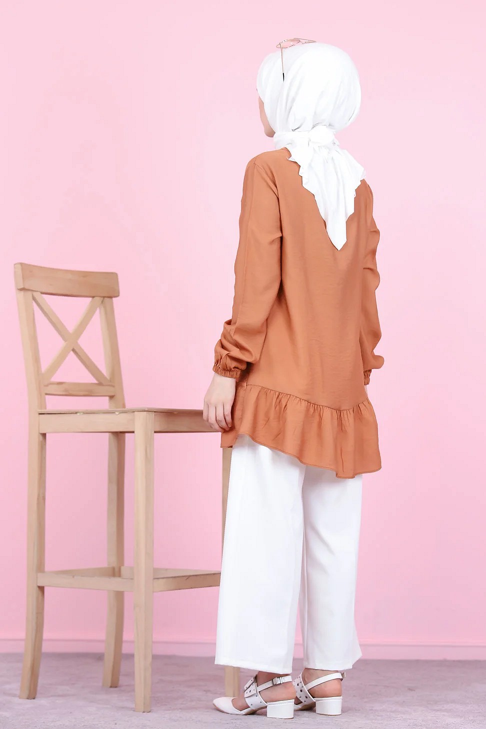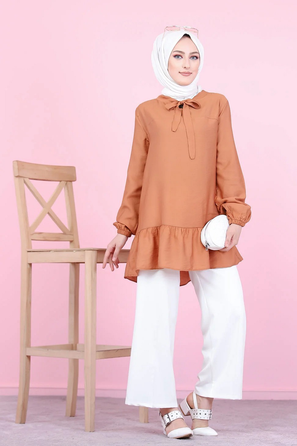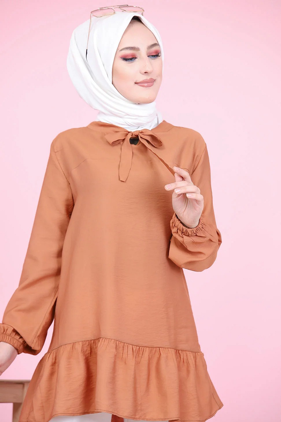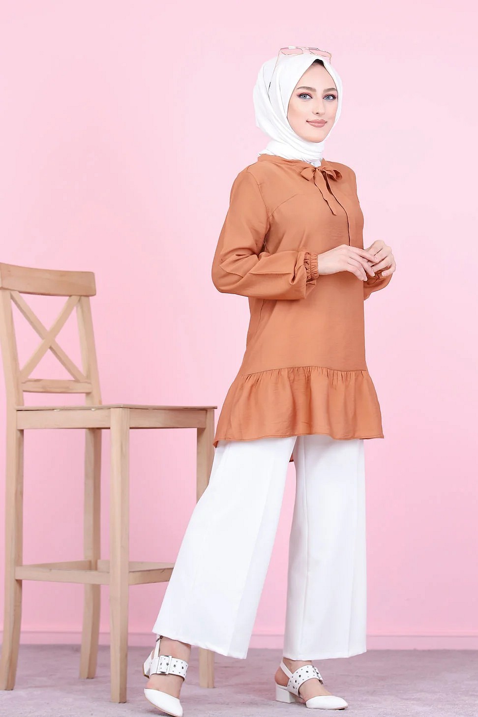 Tunique à volant (Vetement tendance femme voilée) - Couleur brique Vetement & Accessoire