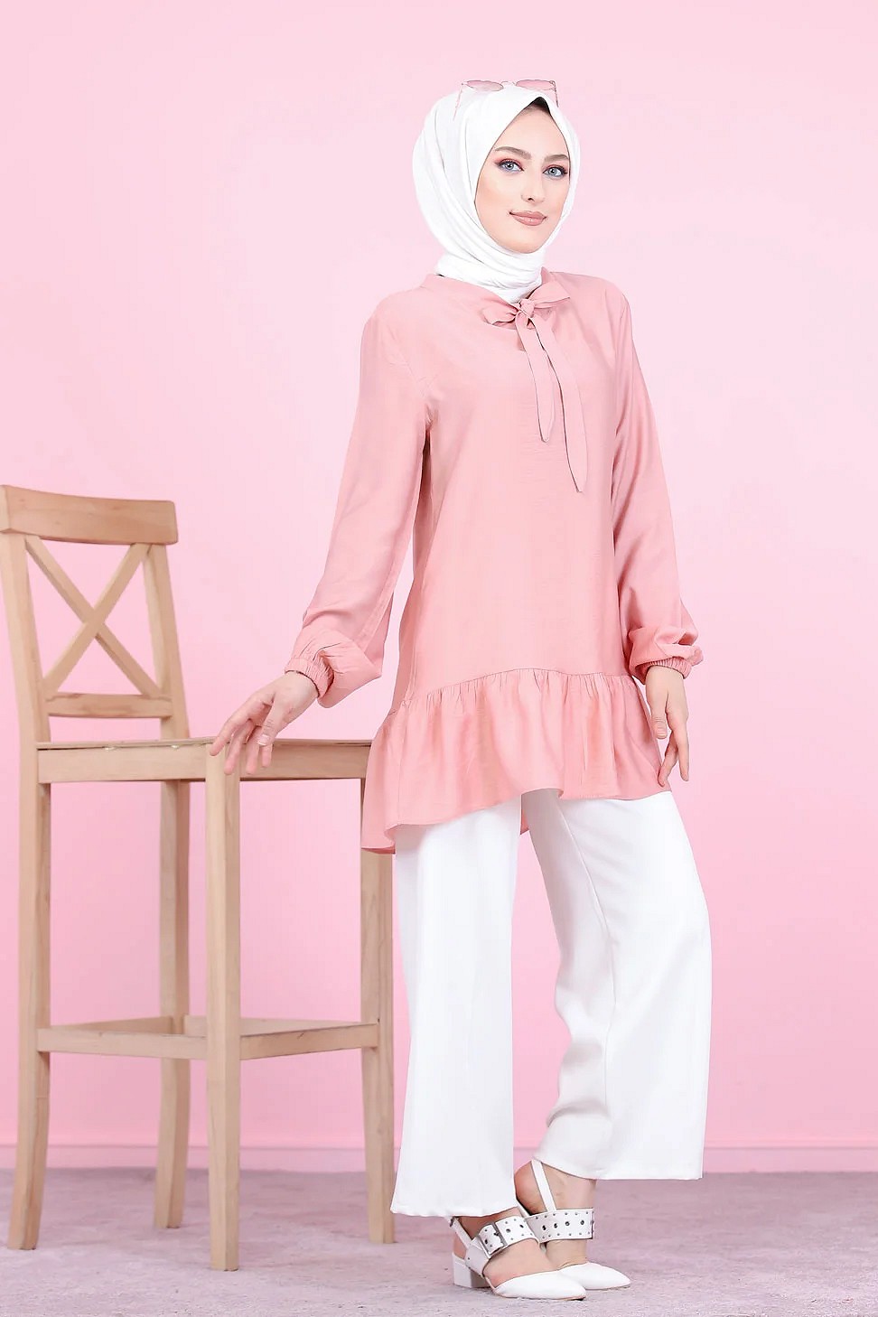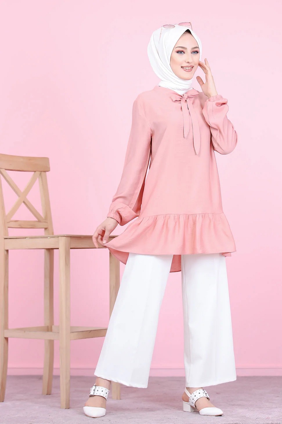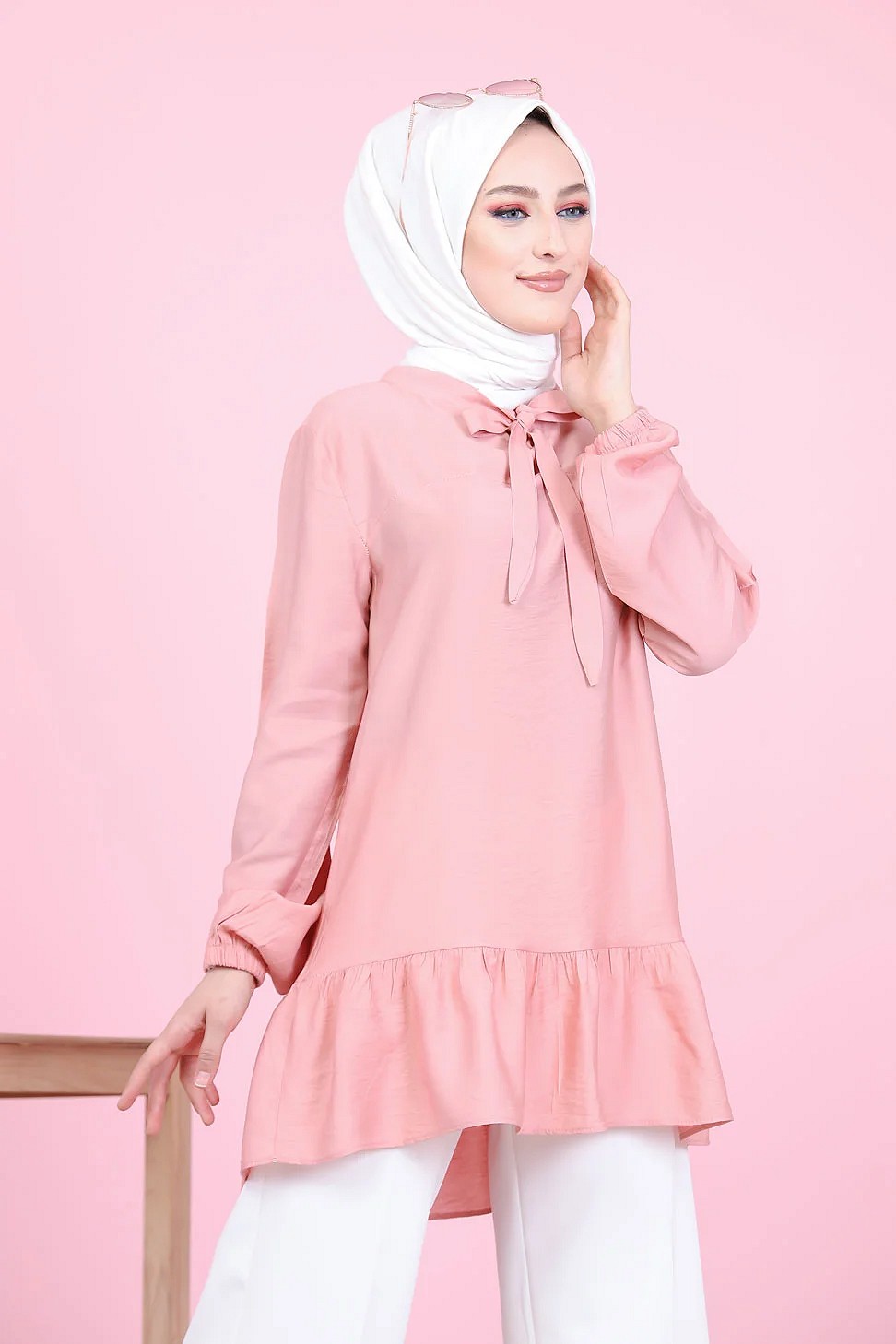 Tunique a volant (Vetement chic femme voilee) - Couleur rose