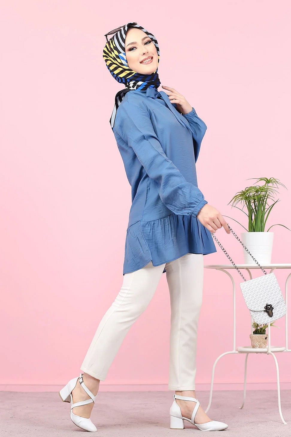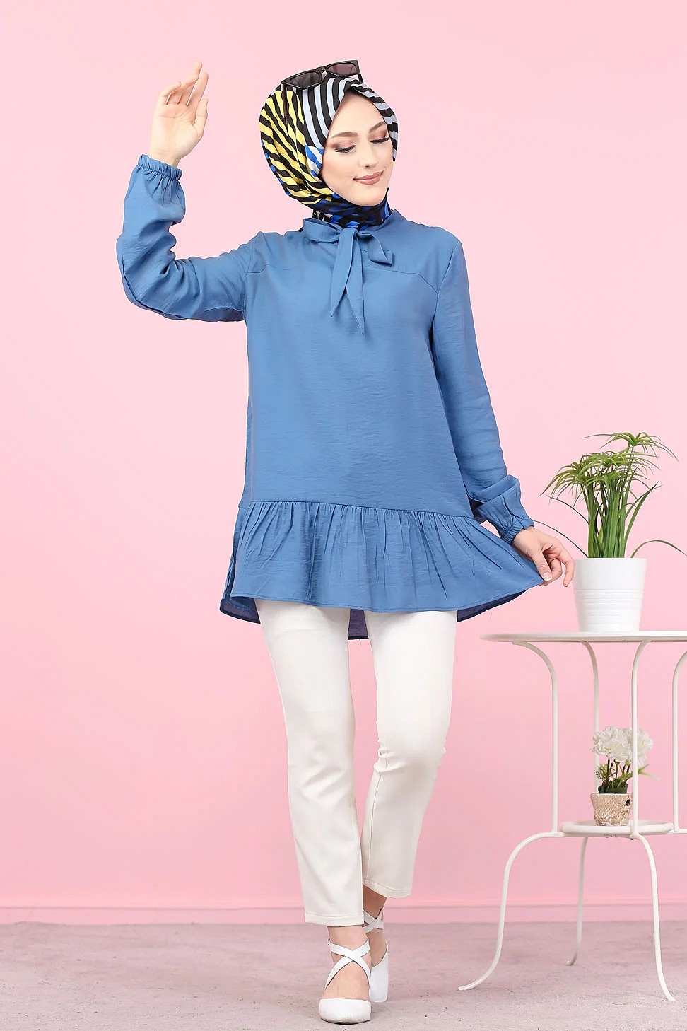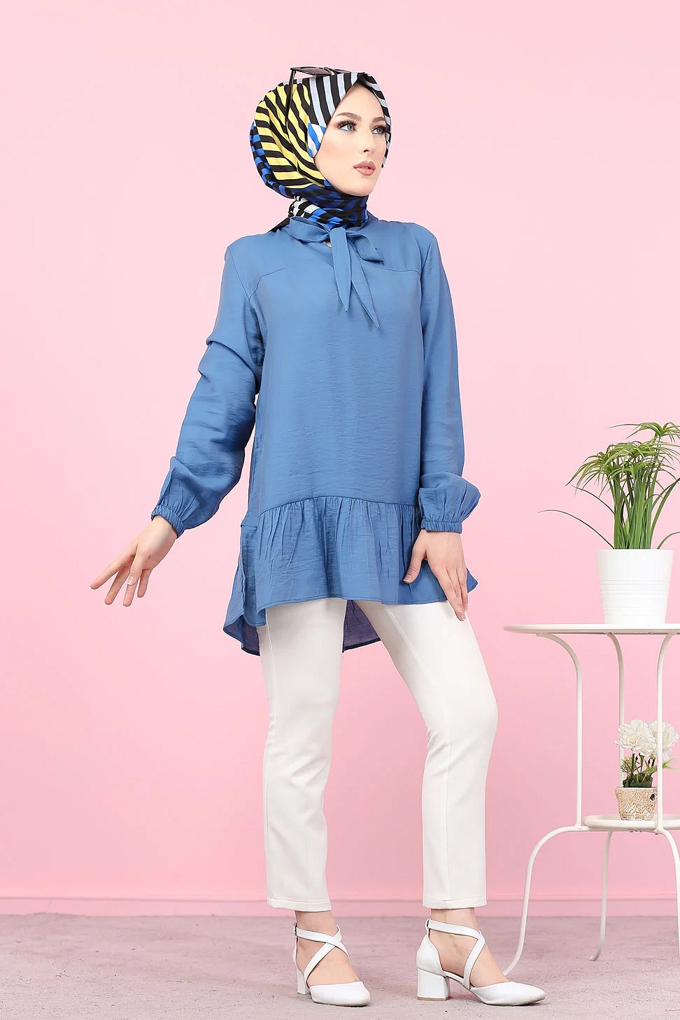 Tunique à volant (Vetement tendance femme voilée) - Couleur bleu indigo Vetement & Accessoire