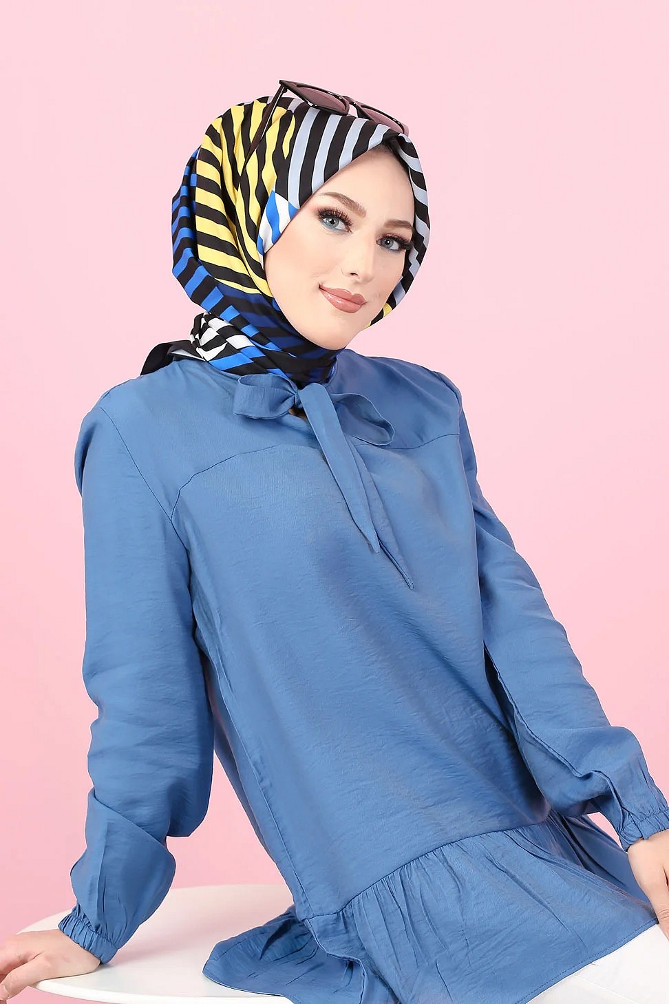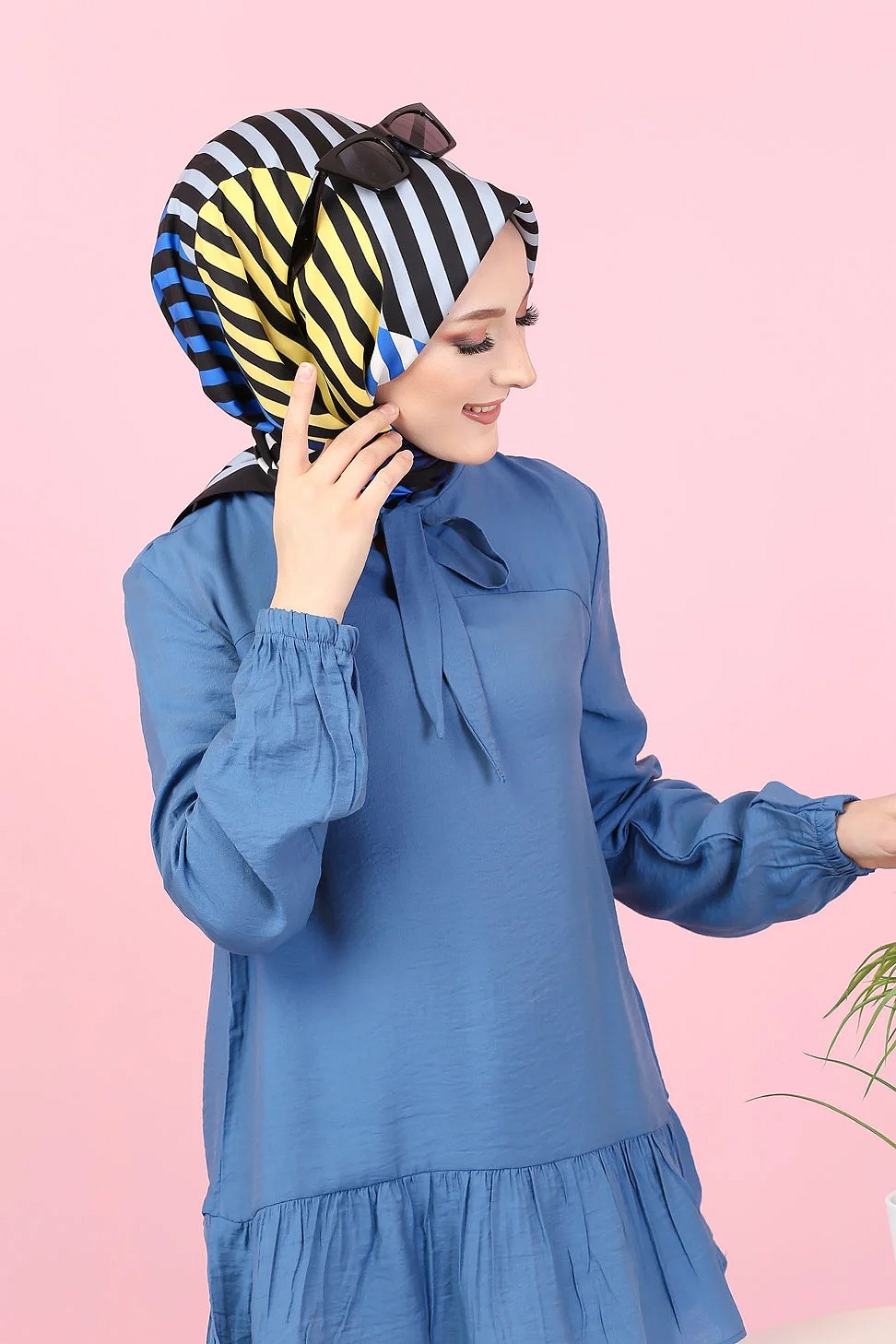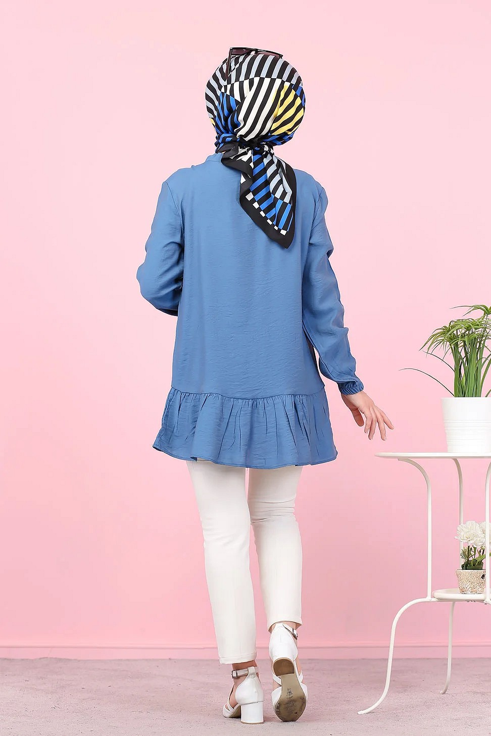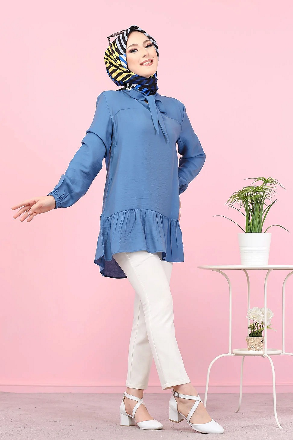 Tunique à volant (Vetement tendance femme voilée) - Couleur bleu indigo Vetement & Accessoire