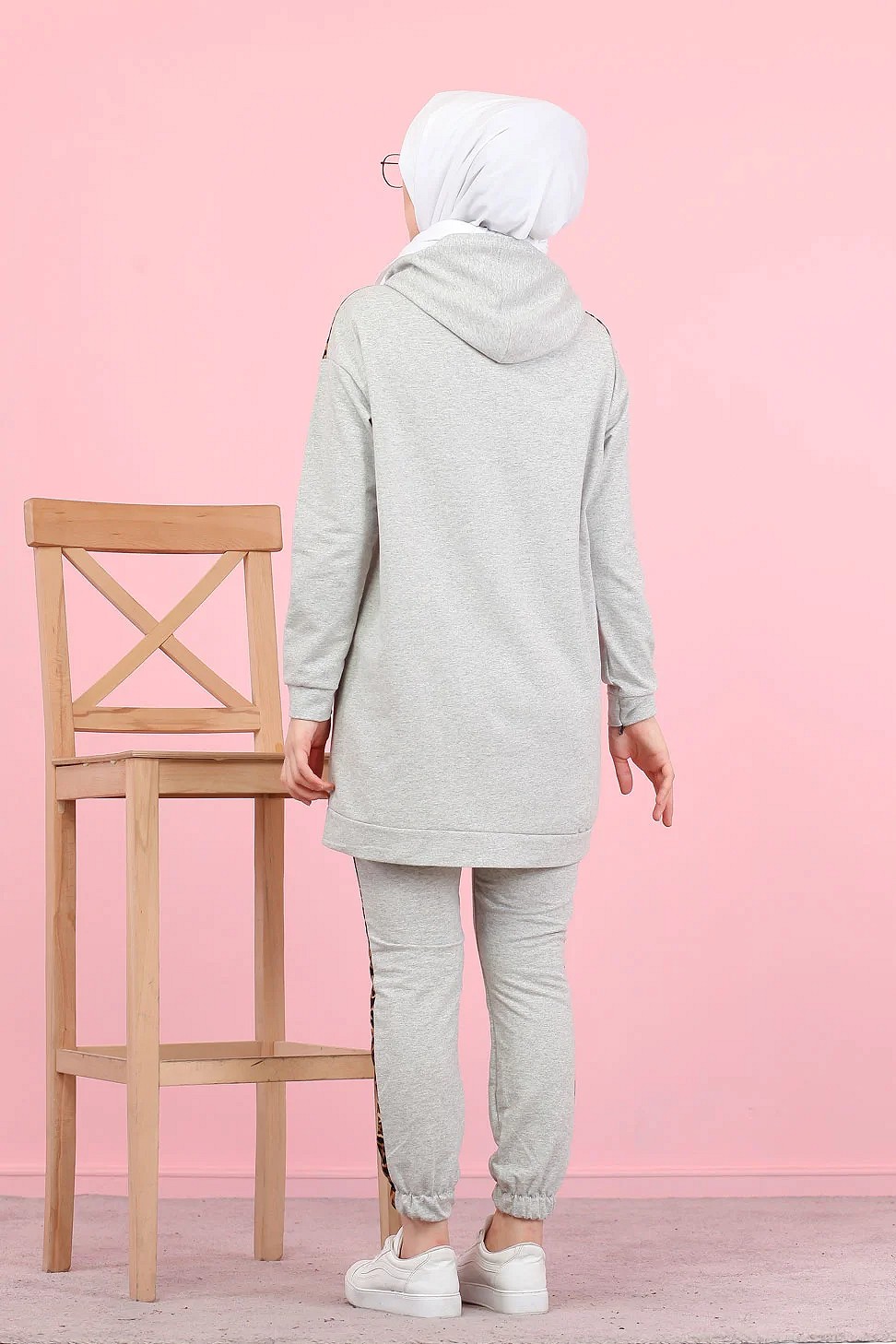 Survetement femme motif panthère Tunique à capuche et Pantalon imprimé "Jolie" (Hijab Sport) - Couleur gris clair Vetement & Accessoire
