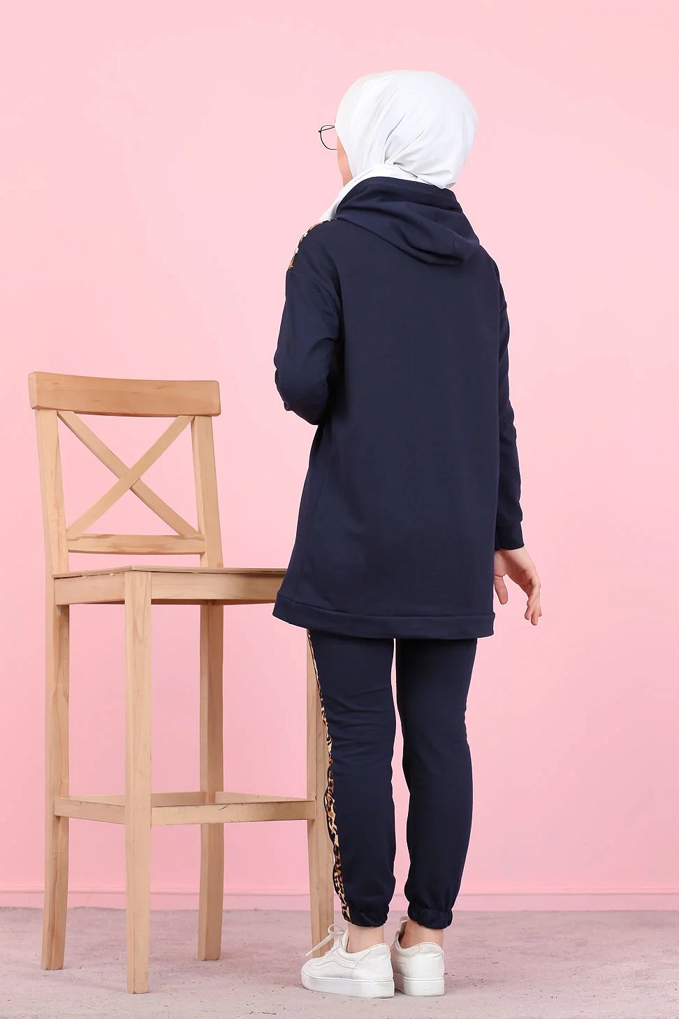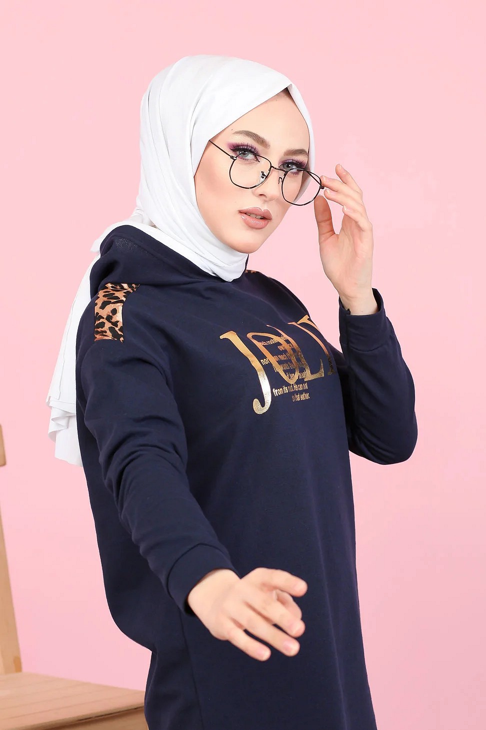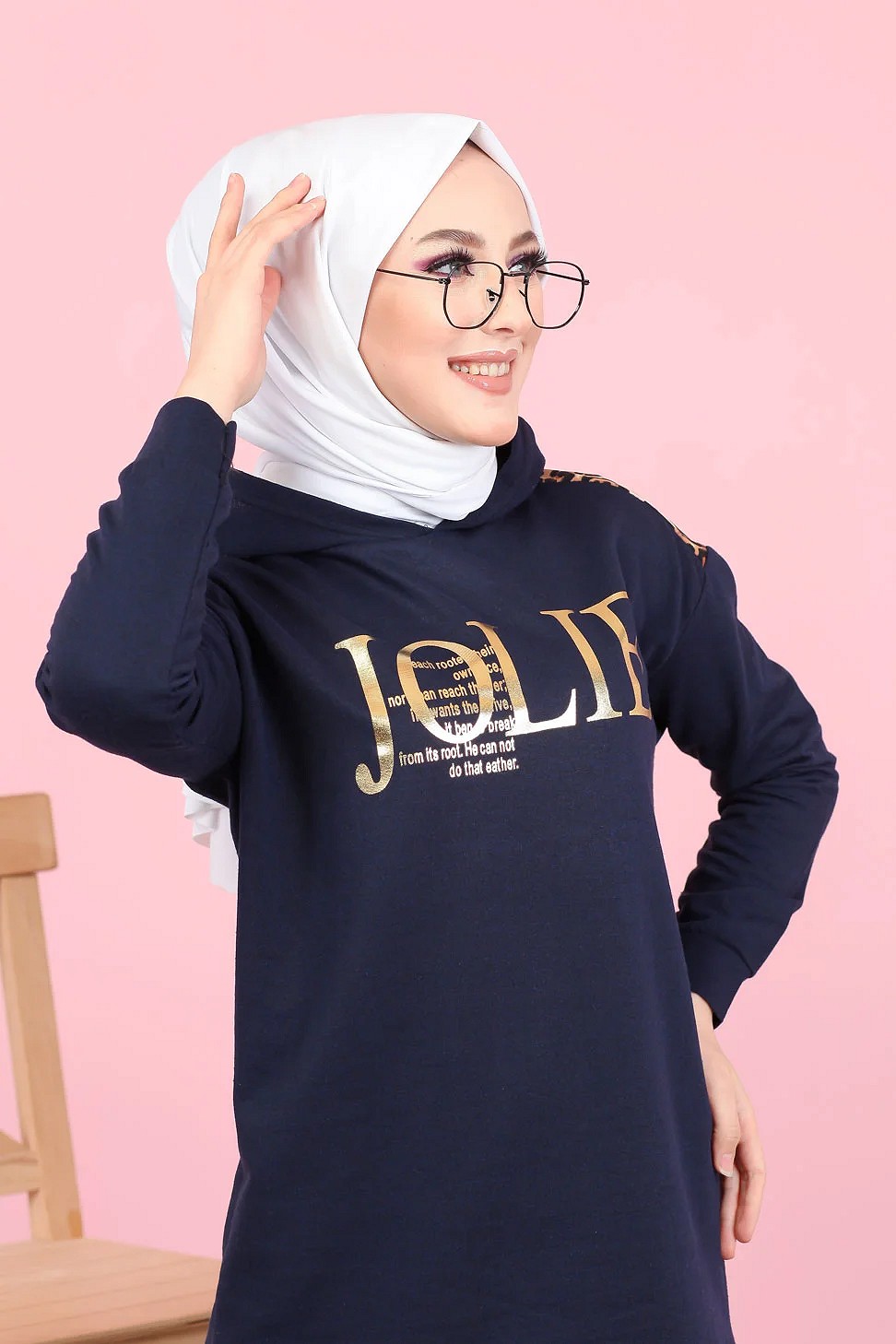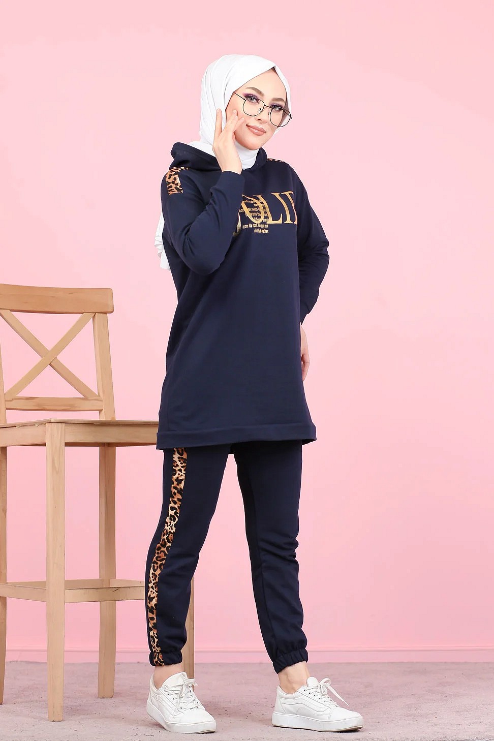 Ensemble survêtement femme deux pièces (Tunique à capuche et Pantalon jogger) avec motif panthère et sweet imprimé "Jolie" en écriture dorée...