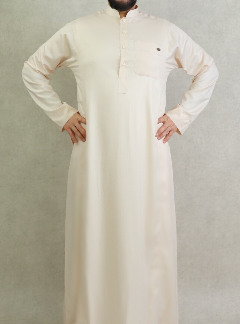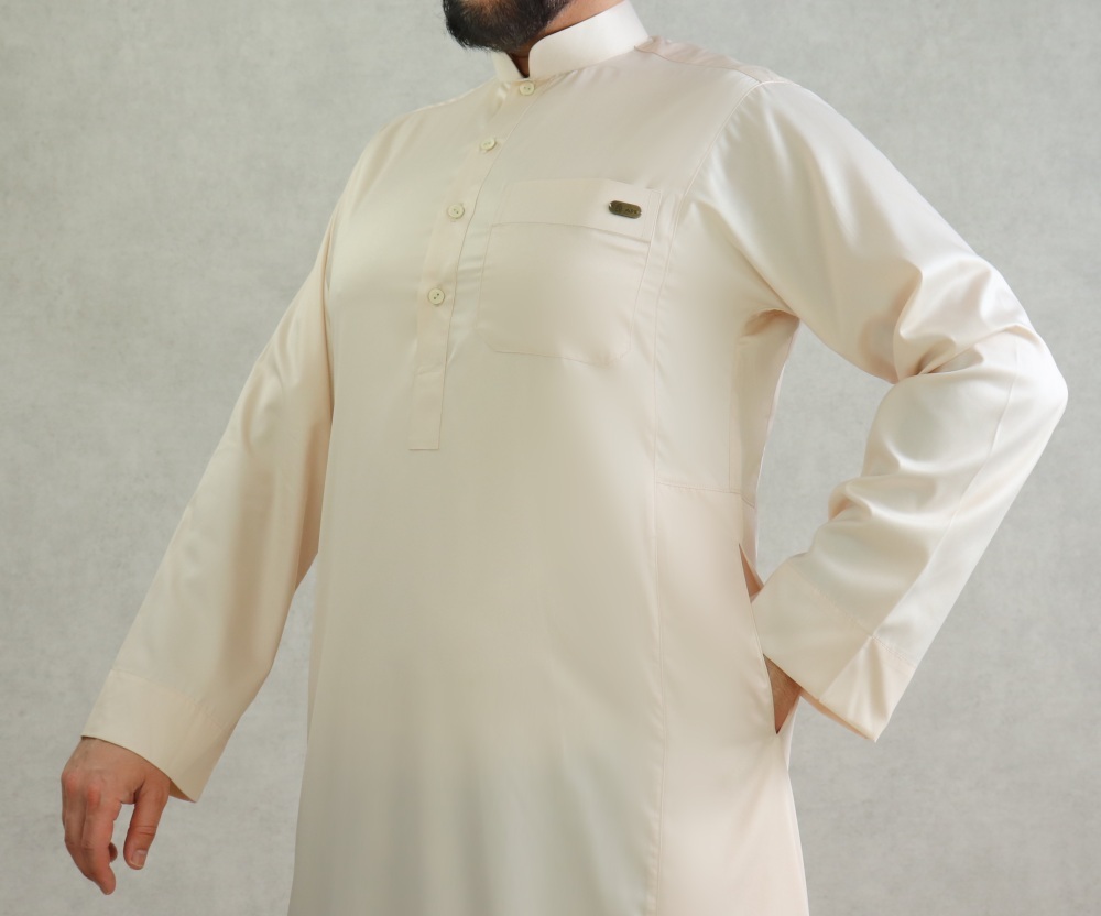 Qamis long manches longues fermeture boutons au niveau de la poitrine. Tissu fluide et très agréable de qualité supérieure, toutes saisons. Très bonnes coutures et finitions. Poche au niveau de la poitrine et deux grandes poches latérales avec sous-poches internes (pour clés ou petits objets).