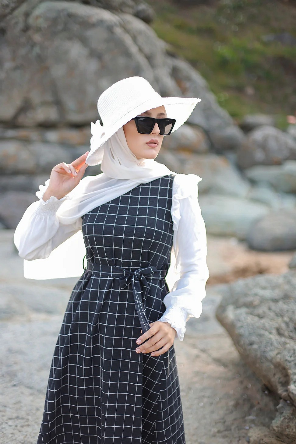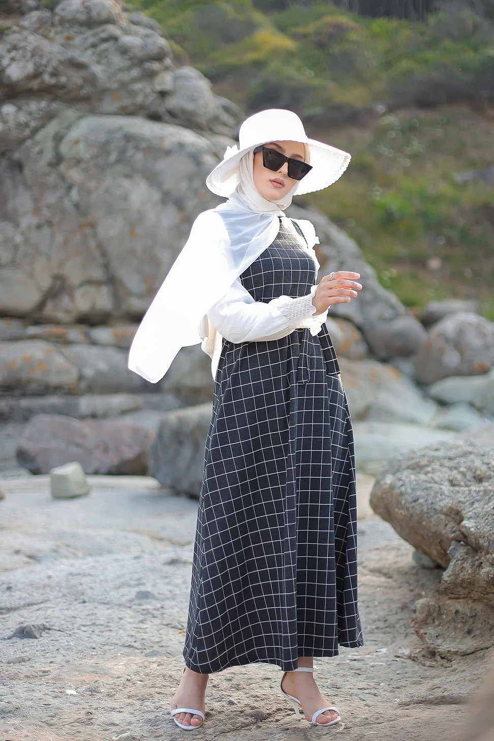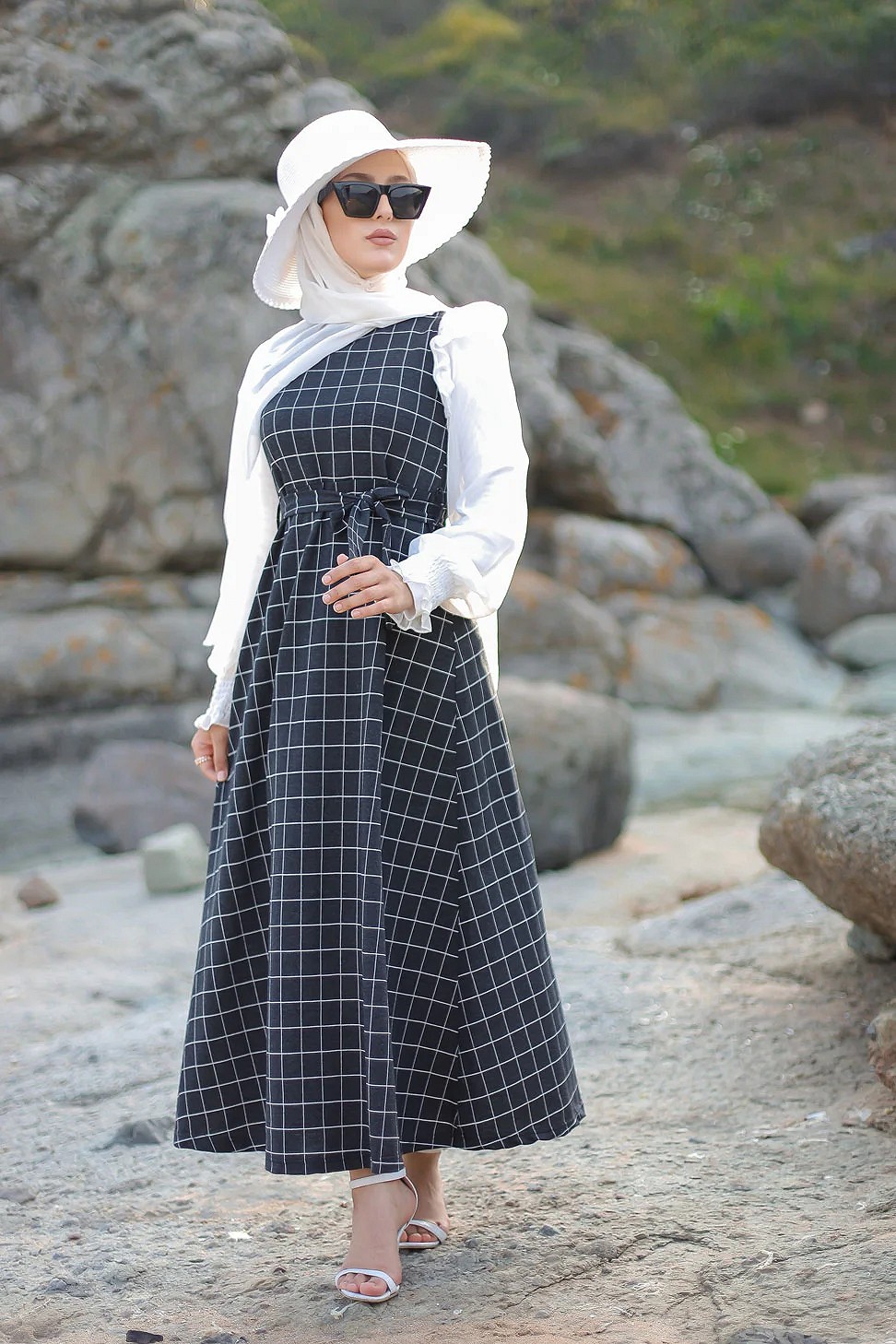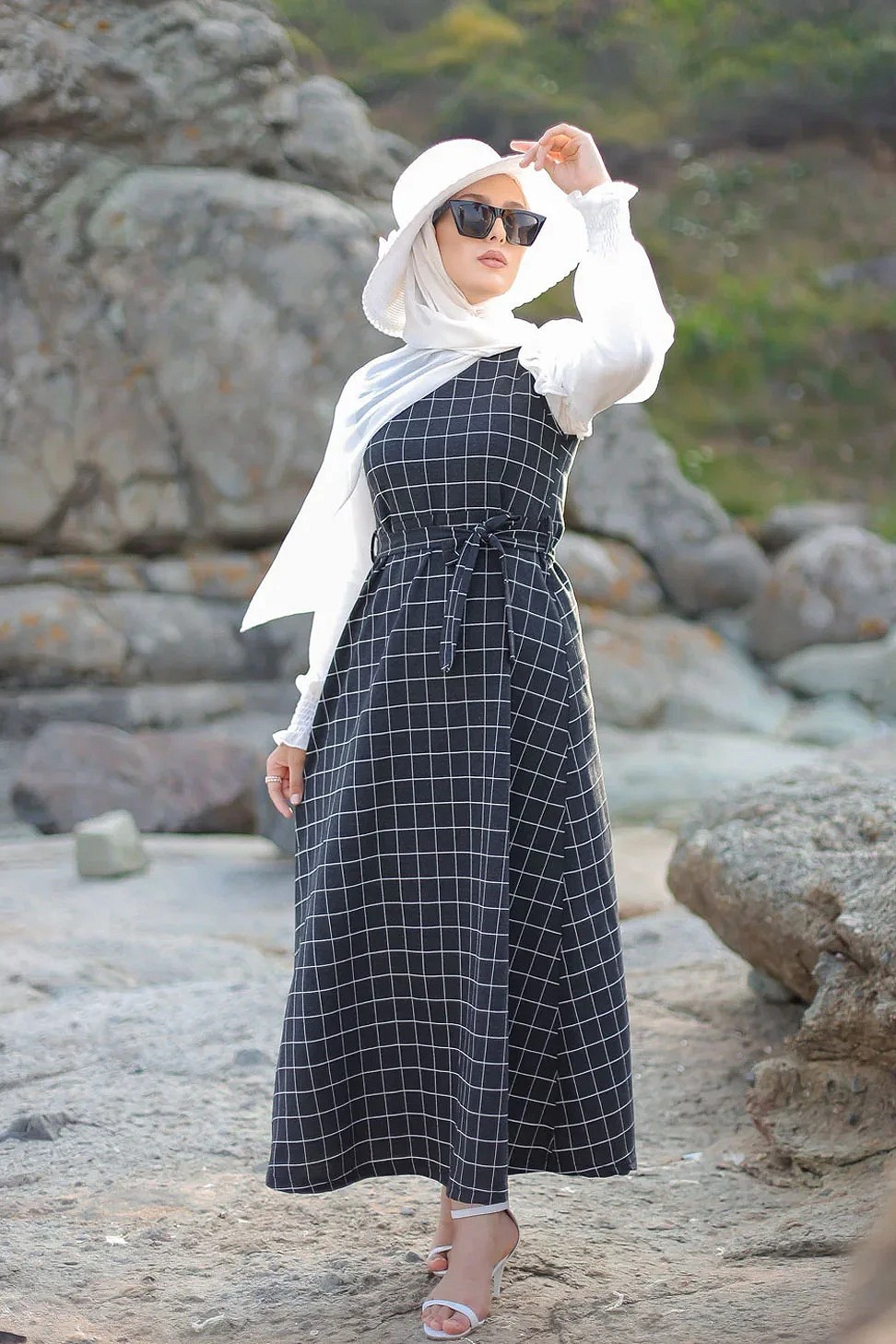 Robe longue à carreaux pour femme - Couleur anthracite Vetement & Accessoire