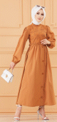Robe en coton habillée ample et évasée avec broderies discrètes pour femme (Tenue classe pour hijab) - Couleur marron/tabac - REF. 36670 (39.90 €)