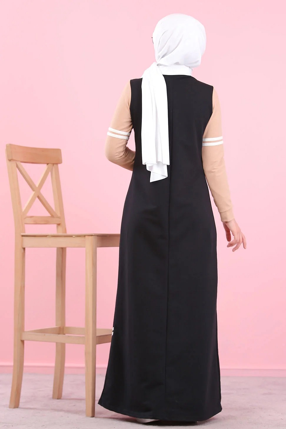 Robe sweat-shirt longue pour femme musulmane - Vetement Modest Fashion (Mode islamique) - Couleur noir et beige Vetement & Accessoire