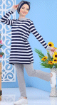 Tunique à froufrous pour femme (Tenue Hidjab) - Rayures couleur bleu - REF. 37651 (19.90 €)