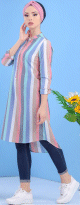 Tunique à rayures à pressions de couleur rose, gris, bleu et beige (100% coton) - REF. 30571 (29.90 €) - En Promotion à 24.90 €