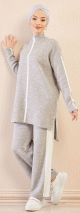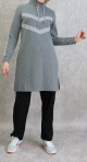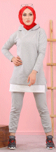Ensemble décontracté et Survêtement (Hijab Sport pour femme musulmane) - Couleur Gris clair et blanc - REF. 32199 (25.00 €) - En Promotion à 19.90 €