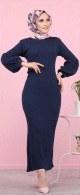 Robe longue tricotée pour femme (Modest Fashion - Automne Hiver) - Couleur bleue marine - REF. 32280 (19.90 €) - En Promotion à 16.90 €