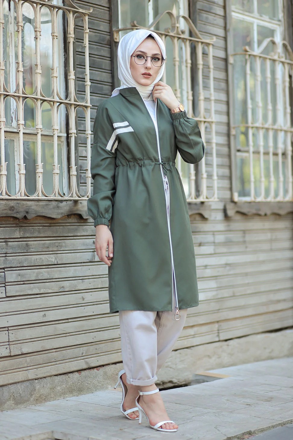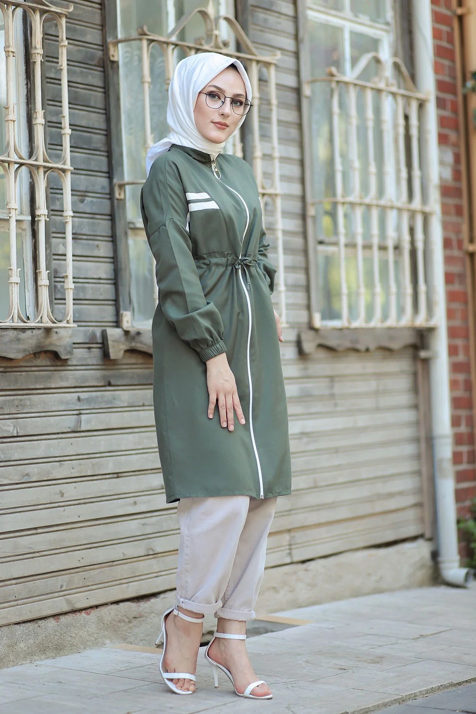 Veste moderne style décontracté avec fermeture zip (Vetement femme voilée) - Couleur kaki Vetement & Accessoire