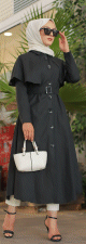 Robe mi longue style Trench (Vêtement hijab) pour femme voilée) - Couleur noir - REF. 33199 (32.00 €) - En Promotion à 24.90 €