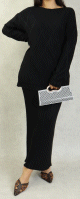 Ensemble en maille deux pièces tunique et jupe pour femme - Couleur Noir - REF. 33654 (38.00 €)