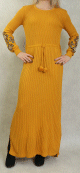 Robe longue en maille fine manche longue pour femme (Saison Automne - Hiver) - Couleur Jaune moutarde - REF. 34126 (29.00 €)