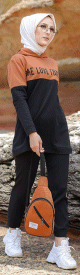 Survêtement hijab sport chic à capuche pour femme musulmane (deux pièces haut et bas) - Couleur noir et rouille - REF. 34577 (25.00 €)