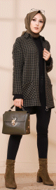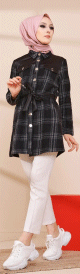 Veste Manteau femme avec ceinture intégrée (Tunique Automne Hiver - Boutique Vêtement Hijab Turque en ligne) - Couleur noir et kaki - REF. 35328 (19.90 €)