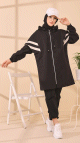 Modèle type sportswear au look moderne et décontracté, pièce maîtresse du dressing Modest Fashion pour la hijabia moderne. Petite touche design avec deux bandes blanches et sa ceinture attache intégrée.